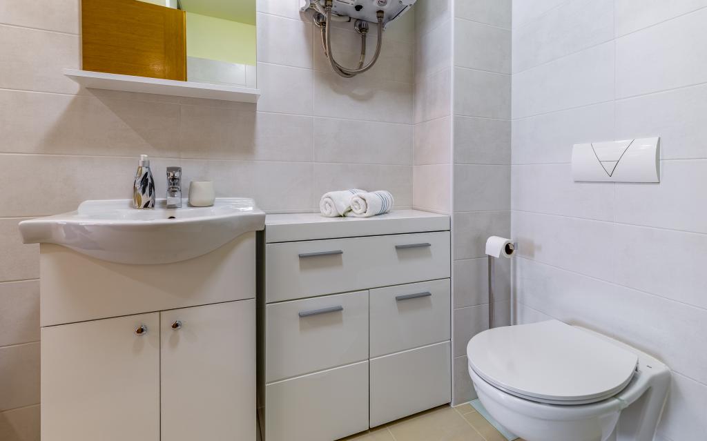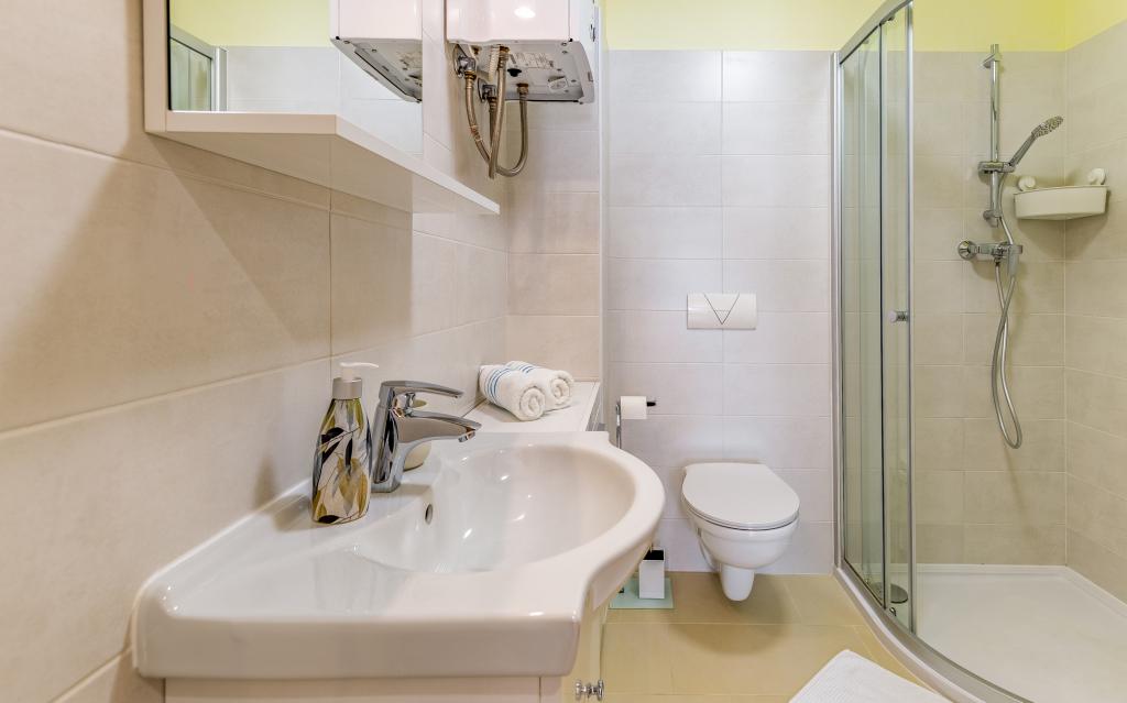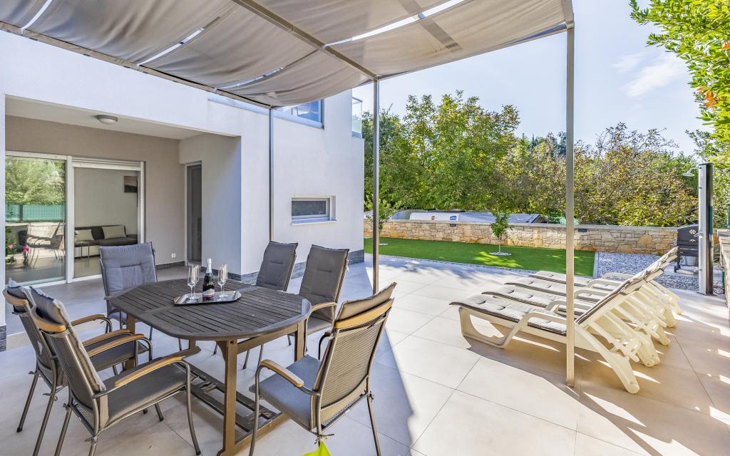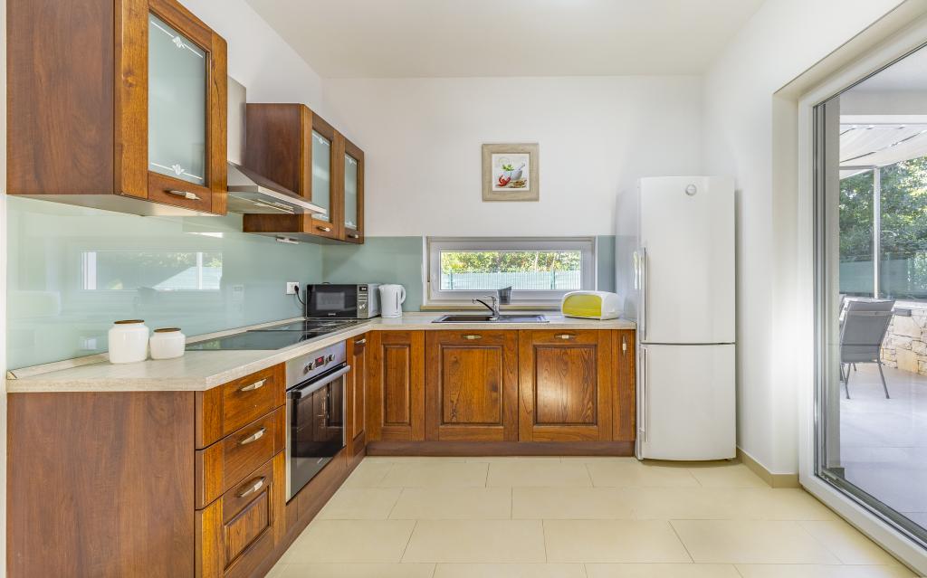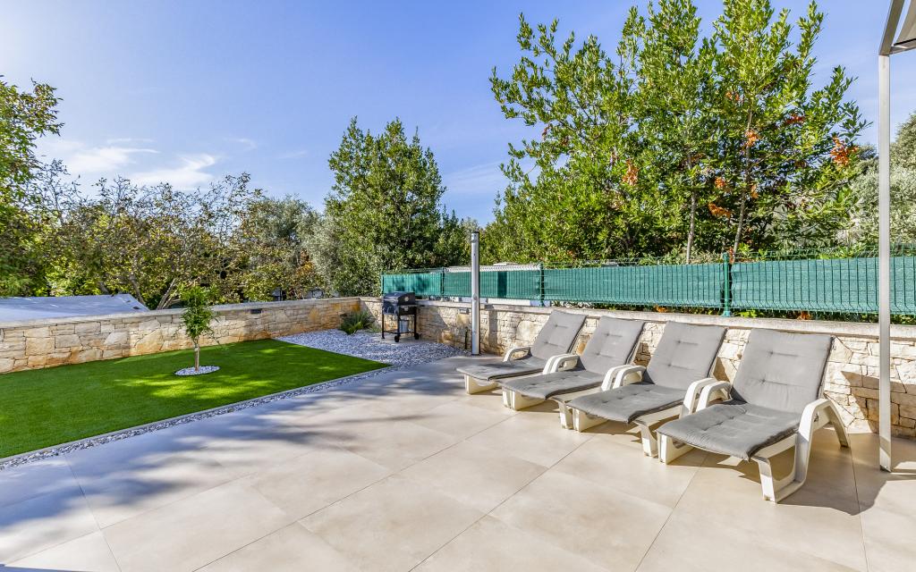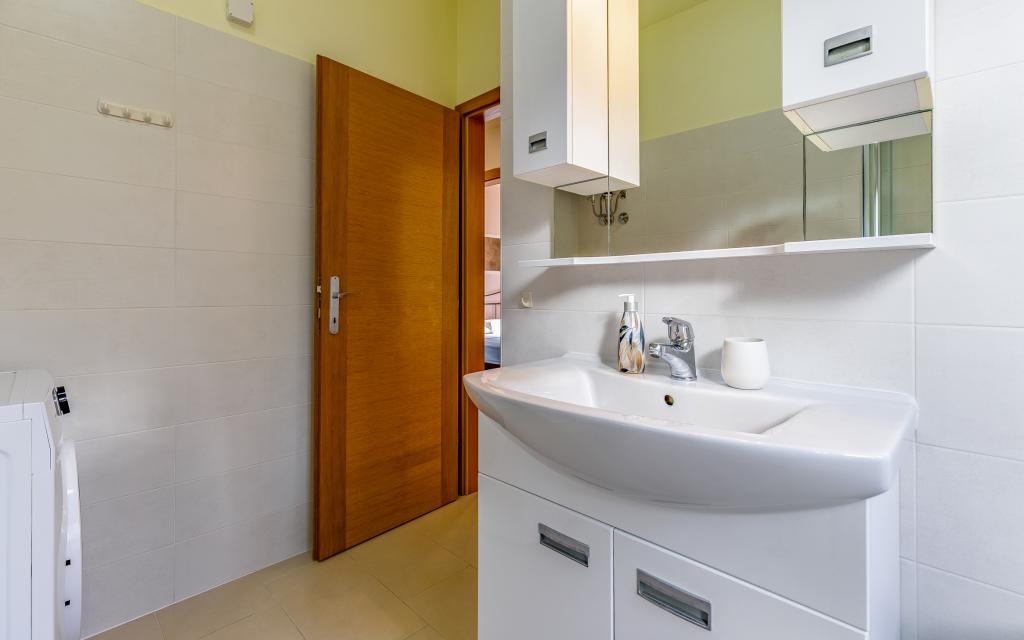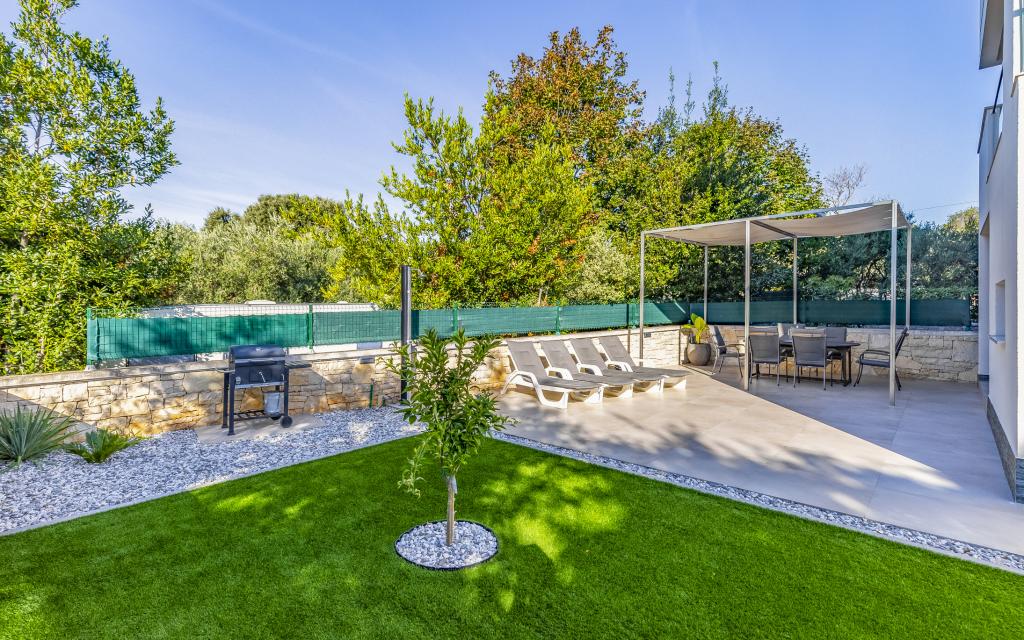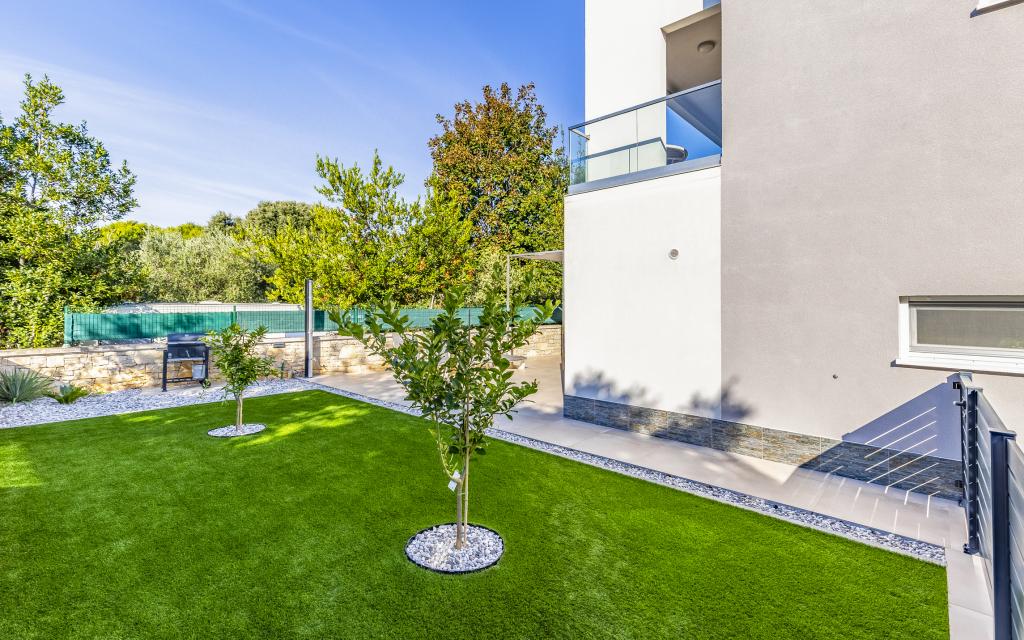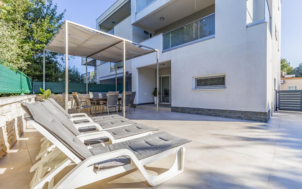 Apartament complet mobilat și la standarde superioare (80 m2), într-o locație excelentă, într-o zonă liniștită din Banjol, la doar 5 minute (300 m) de mers pe jos de cele mai frumoase plaje din zonă. Apartamentul este situat la parterul unei clădiri rezidențiale cu doar trei apartamente. Apartamentul are o grădină privată (100 m2) cu terasă, masă, șezlonguri, duș exterior și grătar, care permite o socializare plăcută cu multă intimitate și este potrivită în special pentru familiile cu copii. Există o parcare privată lângă clădire, cu acces direct la grădină și terasă. Grădina a fost complet renovată în 2024. Întreaga clădire este protejată de un gard de securitate (acces cu card). Apartamentul are 2 dormitoare cu paturi duble, 2 băi cu toaletă și duș, un living spațios cu o canapea extensibilă, sufragerie și bucătărie. Apartamentul este climatizat și încălzit iarna (încălzire prin pardoseală) și are un șemineu interior, așa că este potrivit și pentru ședere în lunile mai reci de toamnă și iarnă. În imediata vecinătate a apartamentului există numeroase baruri și restaurante, precum și magazine decorate.