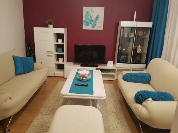 Apartamentul este situat în centrul orașului Baska Voda, la 200 m de mare, apartament are doua dormitoare, baie, living si bucatarie. De asemenea, apartamentul are o terasă minunată pentru o vacanță cu cei dragi. Loc de parcare, Wi-Fi și aer condiționat sunt incluse.
