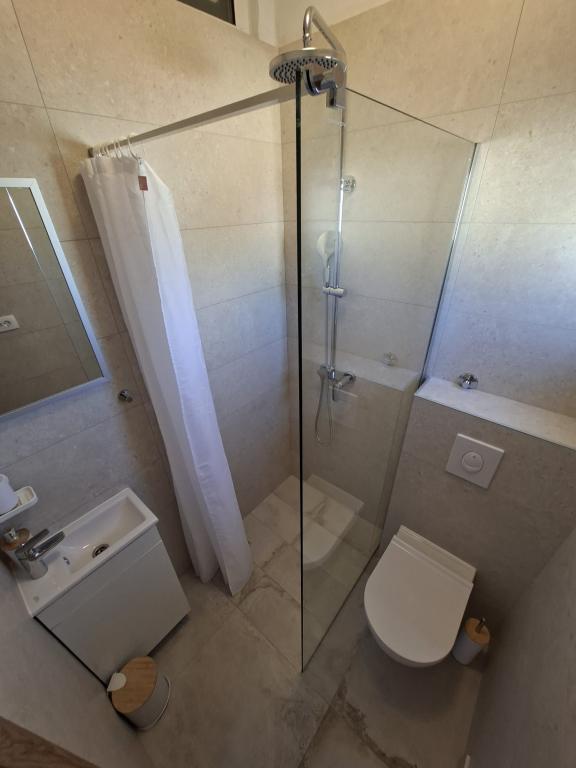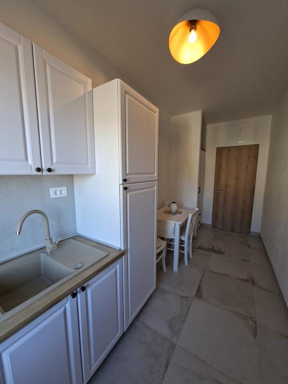 Apartamentele noastre noi, decorate modern, sunt situate în Baška Voda, într-o zonă liniștită a orașului, ideale pentru o vacanță relaxantă. Un apartament a fost complet renovat în 2025, în timp ce celelalte sunt în stadiile finale de decorare și renovare, toate fiind decorate cu o atenție deosebită la detalii, confort și stil contemporan. Apartamentele sunt situate în imediata vecinătate a plajei, ceea ce permite accesul rapid și ușor la mare. Pe de o parte există o priveliște frumoasă asupra mării cristaline, în timp ce pe de altă parte vă puteți bucura de o priveliște impresionantă asupra muntelui Biokovo, care creează un echilibru perfect între mare și natură. Aceasta este o alegere ideală pentru oaspeții care caută liniște, confort și cazare modernă într-una dintre cele mai frumoase locații de pe Riviera Makarska.