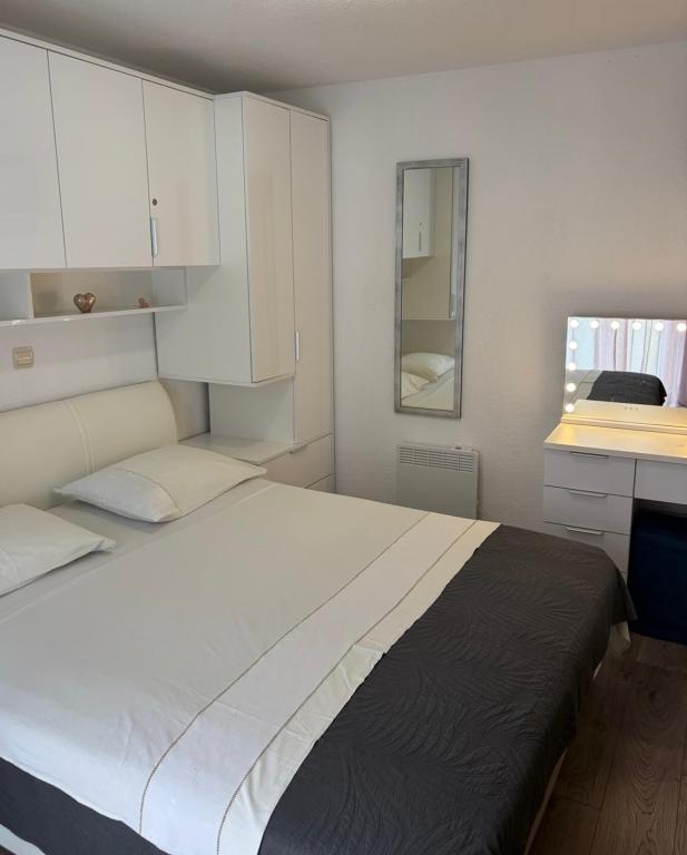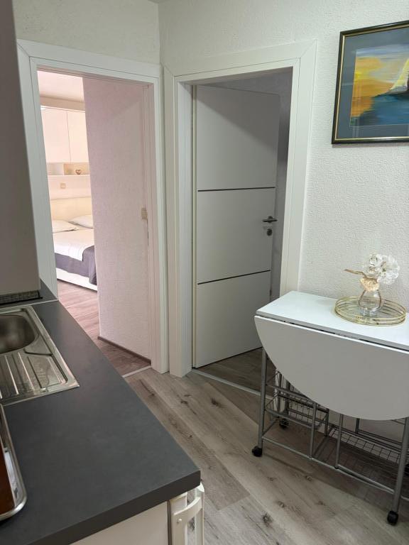 Apartament Nino este un apartament modern dotat cu tot ce ai nevoie pentru vacanta ta. Apartamentul este dotat cu aer condiționat și are o bucătărie utilată. Două dormitoare sunt dotate cu televizoare și au băi proprii. Apartamentul are un balcon și o terasă cu o vedere frumoasă la mare și Muntele Biokovo. Pe lângă o mică zonă de luat masa în apartament, există o zonă de relaxare și șezlonguri pe terasă. Apartamentul nostru Nino este situat la 5 minute de mers pe jos de centru și de plaja principală. In apropiere se afla si un loc de joaca cu gazon artificial pentru activitati sportive: fotbal, baschet,...
