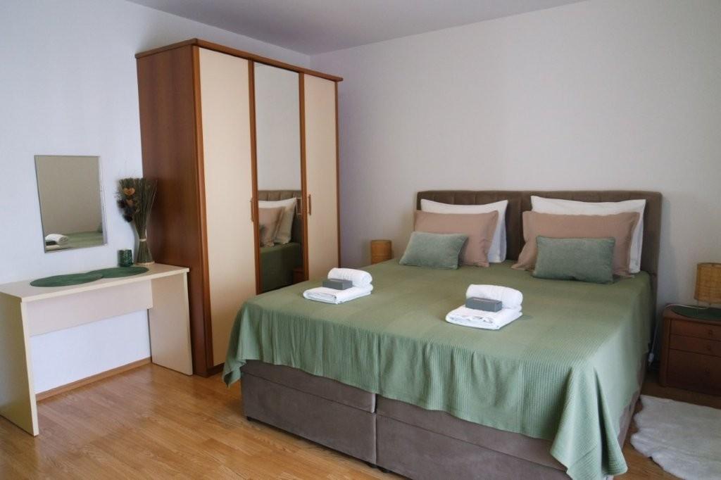 Apartamentele Harmonia modern echipate sunt alegerea perfectă pentru o vacanță confortabilă în familie sau pentru cuplurile care caută cazare confortabilă în apropierea plajei. La aproximativ 200 de metri de plaja Nikola, într-o zonă atractivă din Baška Vodă și nu departe de centru, cu o vedere frumoasă laterală a mării și a muntelui Biokovo. Oferim cazare în apartamente verzi și portocalii, destinate 2 adulți cu 2 copii mici și într-un apartament turcoaz pentru 2 adulți cu ev. 1 copil. Fiecare apartament este de 40m2, are un dormitor mare, zonă de living care include o bucătărie complet utilată, masă și scaune și o canapea extensibilă, baie și terasă. Apartamentele verzi și portocalii sunt situate la primul etaj al casei de familie și au balcoane mari, cu vedere la mare, în timp ce apartamentul turcoaz este situat la subsolul casei, fără vedere la mare, cu o terasă mare și scaune. Fiecare apartament este complet echipat, oferind curățenie și culori strălucitoare, care cu siguranță te vor face să te simți confortabil și să ai o vacanță frumoasă.