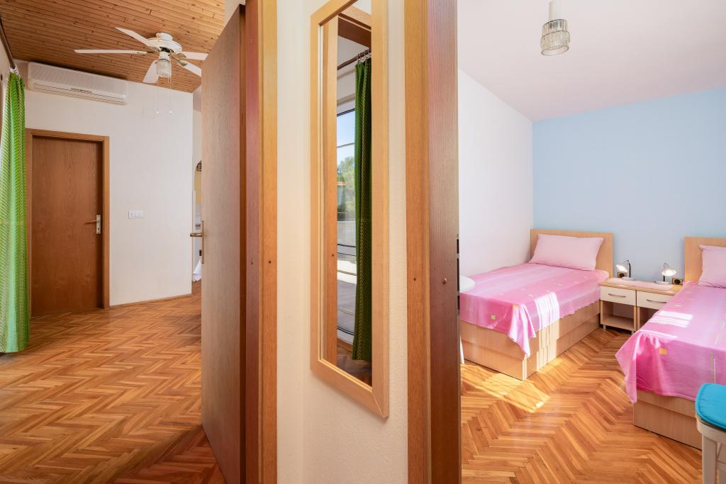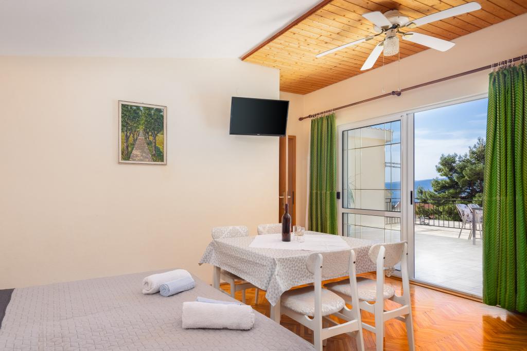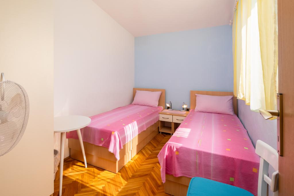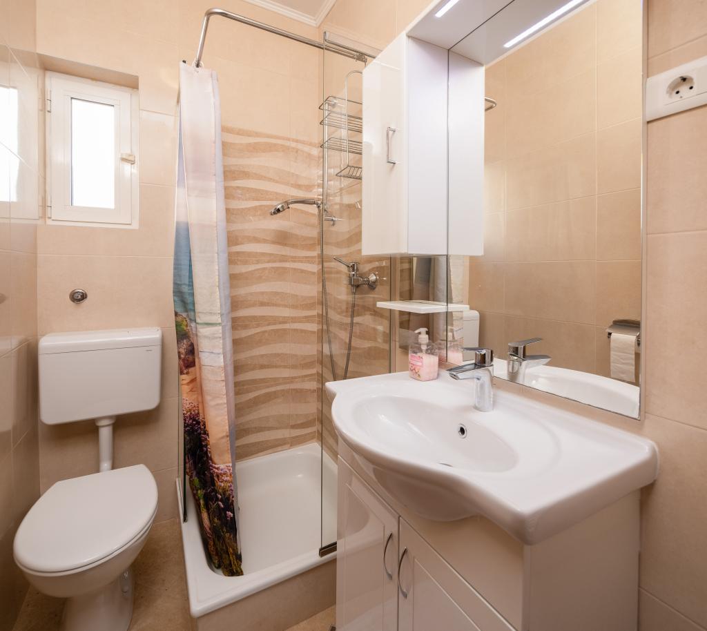 Situate într-o zonă liniștită din Baška Voda, aceste apartamente oferă cazare confortabilă și practică, la aproximativ 400 m de plajă. Ideale pentru cupluri, familii sau grupuri mici, proprietatea include încă un apartament spațios cu două dormitoare și două băi și o unitate mai mică, potrivită pentru 2 adulți și un copil. Ambele apartamente au un design funcțional, bucătării utilate, camere de zi confortabile și spații exterioare, inclusiv un balcon privat și acces la o terasă comună cu grătar. Oaspeții au, de asemenea, parcare privată și un mediu liniștit, aproape de toate facilitățile. O alegere ideală pentru un sejur relaxant și lipsit de griji în Baška Voda, cu personal disponibil pe tot parcursul sejurului.