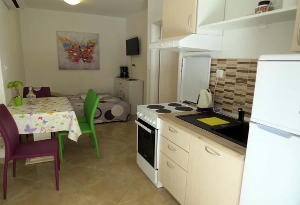 apartamente moderne sunt situate în centrul Baska Voda în apropiere de plaja Nikolina. În imediata apropiere se afla magazine, restaurante, baruri și alte facilități pentru un timp plăcut. Fiecare cameră are aer condiționat și are un televizor și un balcon (A6).