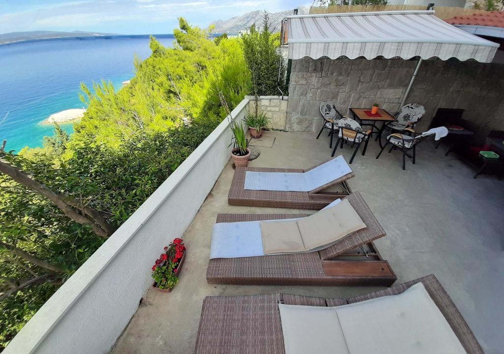 Apartament nou renovat și complet echipat într-o zonă liniștită, între Baska Vodă și Brela, situate în primul rând până la mare, deasupra unei frumoase plaje. Facilitatea este situată la 10 minute de mers pe jos (aproximativ 500 m) de centrul ambelor locuri. Terasă mare cu baldachin și vedere la mare, 2 dormitoare duble, două băi și bucătărie cu acces la terasă. Totul nou. Apartamentul este situat la un etaj separat, cu intrare separată, o grădină mare separată de toți vecinii. Parcare privată la umbra chiar deasupra casei.