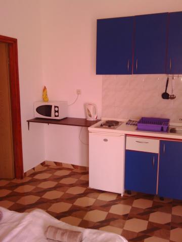 Apartamentele sunt situate pe trei nivele, care sunt independente una de cealaltă, cu 4-6-8 paturi. La etajul al doilea sunt apartamente pentru familii mari sau societate cu o baie, bucatarie si sufragerie bine echipată. Aceste aparmani sunt dotate cu aer condiționat. In fiecare apartament poate pune un pat suplimentar, la același preț. Fiecare apartament are o bucătărie complet utilată (frigider, aragaz), baie (duș, chiuvetă, toalat, oglindă), camere (dulapuri, pat dublu), terasă cu vedere la mare (masa, scaune).