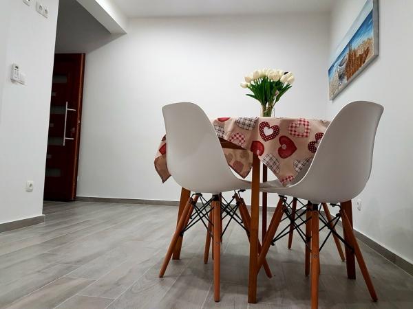 Nou proiectat și apartamente mobilate într-o zonă liniștită din datele, pe locul doi la mare. Aproape de plajă (10m), restaurante, cafenele și 10 minute cu mașina de la Zadar. In apropierea Paklenica National Park (City), Parcul Național Krka, iar recent deschis parcul de distracții în portul roșu.