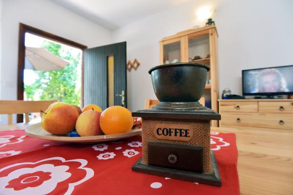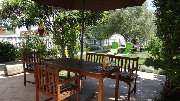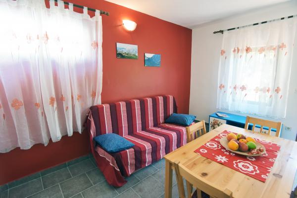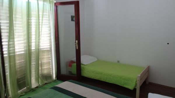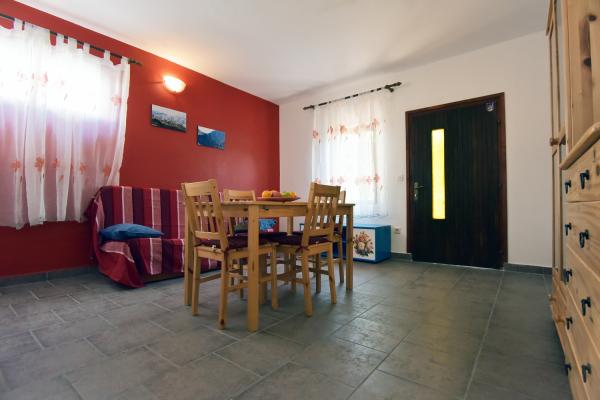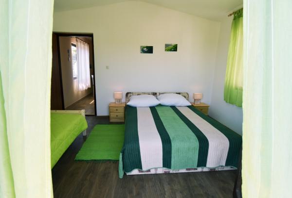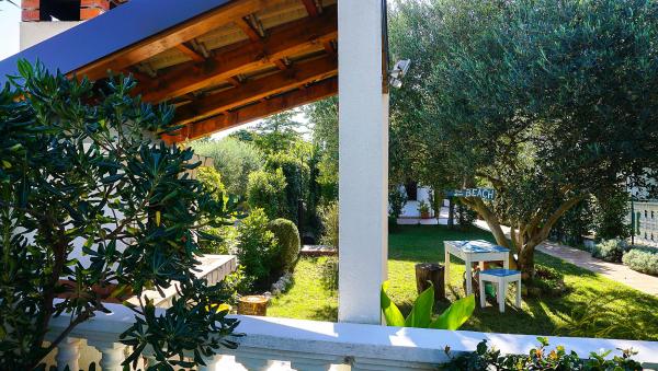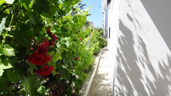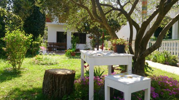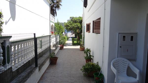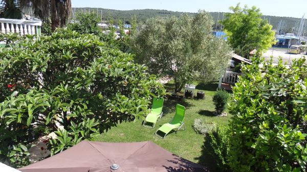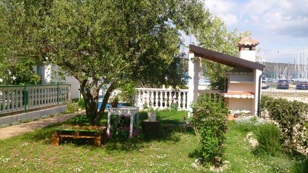 Casă mică, confortabilă, cu o grădină mediteraneană liniștită și vedere la portul de agrement Dalmația. Sala de la parter de mese și bucătărie mică, Cameră single cu baie și toaletă. Pe partea de sud a grădinii mic cu palmieri, o scara duce la primul etaj, cu doua dormitoare (1 cu aer condiționat), cu un pat, birou, dulapuri, baie și toaletă. Balcon deschis la grădină. Pe terasa spațioasă în afara intrarea în casă este o mobilier de gradina din lemn de calitate și o umbrelă mare. Gazon amenajat cu un măslin mic și nešpulom. Plante mici mediteraneene înconjoară zona cu șezlonguri, duș în aer liber, și o casetă de selectare grătar separat. In fata este o parcare privată pentru 3 masini. Casa este disponibil pe deplin oaspeților. 5 min de mers pe jos de plaja de nisip frumoasă (bar pe plaja, diving club, la mare inchiriere scooter, o crema mare de gheață, terenuri de volei, scaune de plajă, dusuri, parcare)