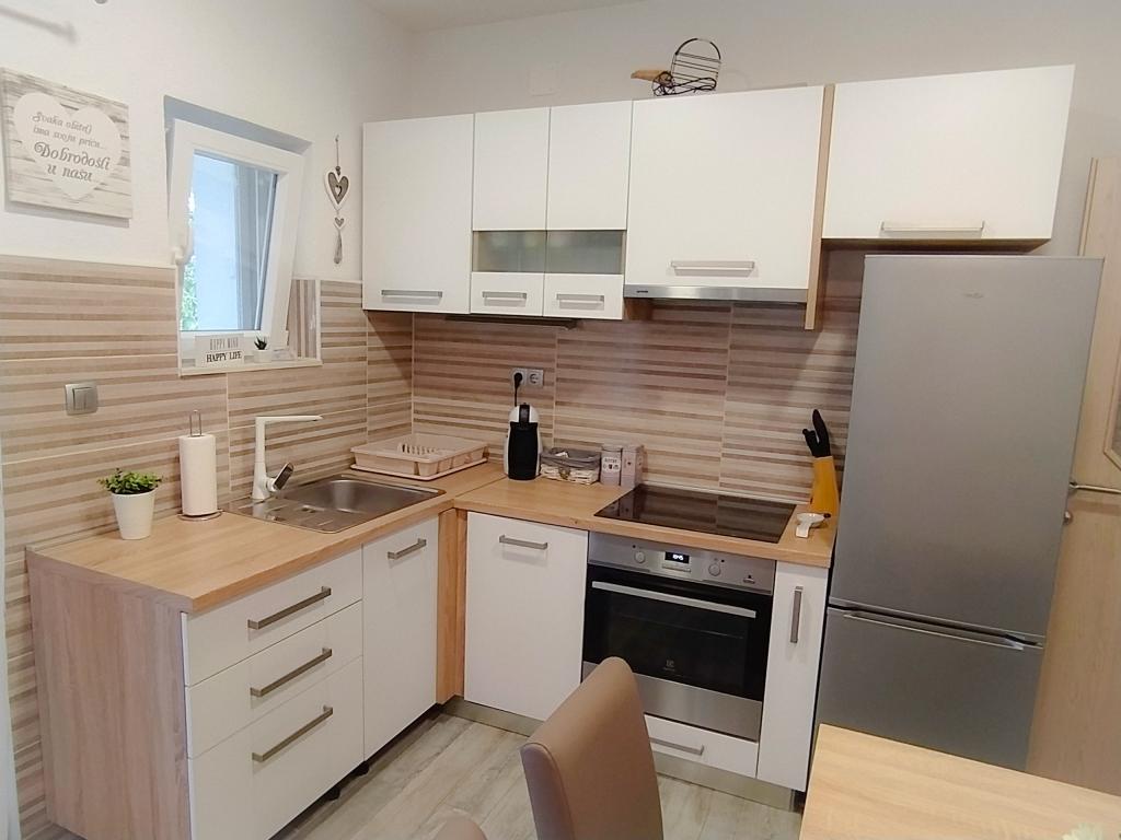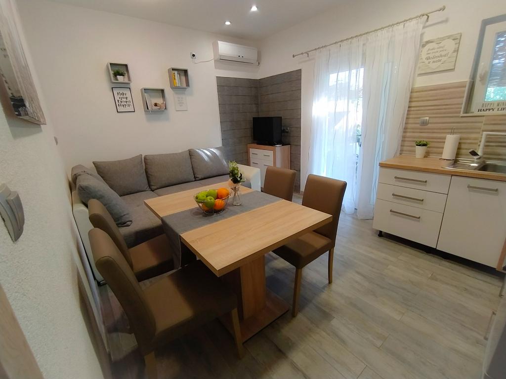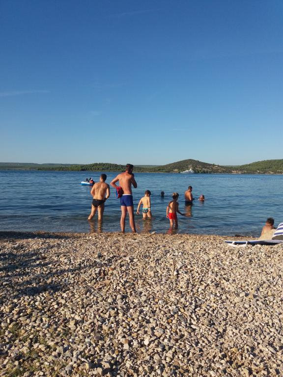Apartament Baza este situat într-un sat liniștit din Bilice, între Šibenik și Parcul Național Krka. Dimensiunea apartamentului este de 35 m2 și terasa de 18 m2. Este format din dormitoare cu două paturi care pot fi îmbinate și separate, o bucătărie complet echipată (cuptor, congelator, mașină de spălat) și un living cu două paturi. Baia este spațioasă și este disponibilă gratuit mașina de spălat. Apartamentul are aer condiționat, Wi-Fi, TV (satelit, Smart TV). Dacă veniți cu copii, vă putem oferi un pătuț de călătorie și un hrănitor. Parcare privată, curte mare și grătar sunt disponibile. Curtea este împrejmuită și suficient de mare pentru a vă juca dacă veniți cu copii mai mici. Distanța până la plajă și cafenea cu loc de joacă pentru copii este de 250 m, 5 minute pe jos. Aproape de autostradă.