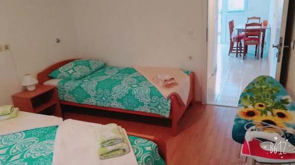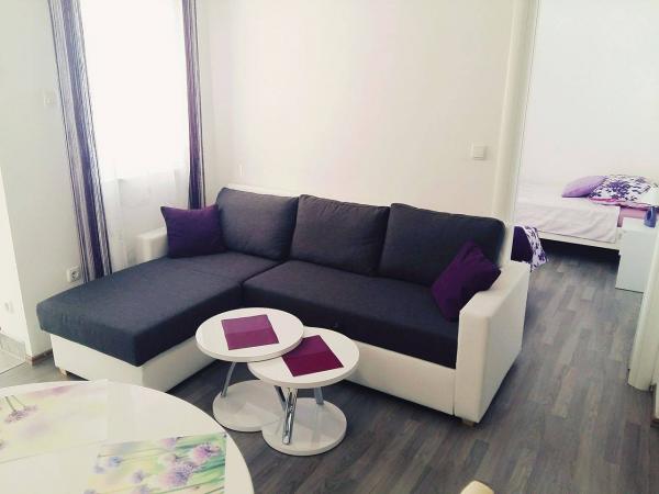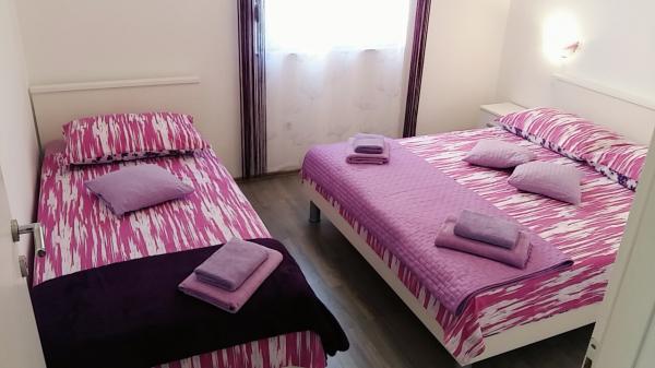 Apartamentul nr. 1 BLUE 3 2 persoane este situat la parterul casei. Complet echipate și modern este format dintr-un dormitor cu trei paturi și o cameră de zi spațioasă, cu o canapea extensibilă pentru două persoane, bucatarie, baie si terasa. Apartamentul nr. Violet 2 5 2 persoane este situat la parterul casei. Complet echipate și modern, format din două camere. Într-o cameră este un pat dublu și oamenii, iar celelalte două paturi de o persoană. Există, de asemenea, o cameră de zi cu canapea extensibilă pentru două persoane, bucatarie, baie si o terasa spatioasa. Apartamentele au posibilitatea de a se alătura \\\\ \\\\ două apartamente, astfel încât între ele acolo \\\\ \\\\ usi duble Apartamentul nr. 3 VERDE Orange 3 1 persoana la parterul casei. apartament complet echipat este format dintr-un dormitor cu trei paturi și pat suplimentar, bucătărie, baie si terasa. Loc de parcare pentru autoturisme în curte.