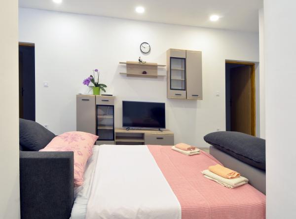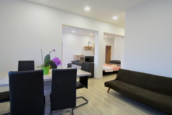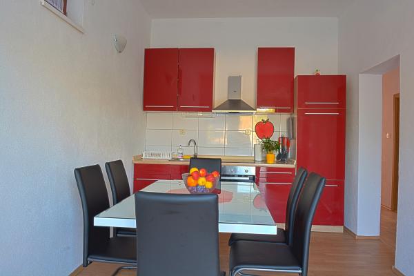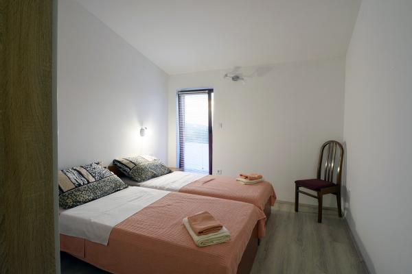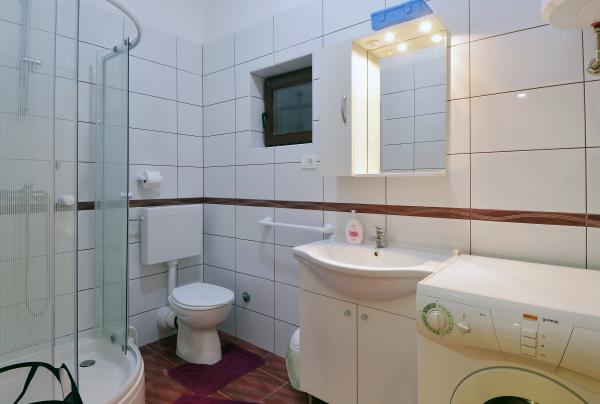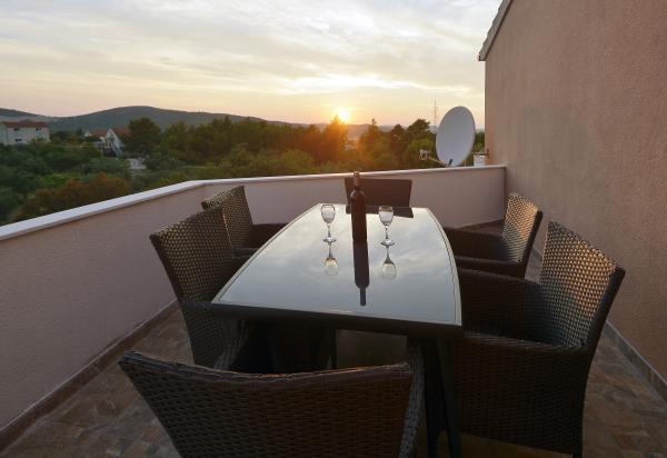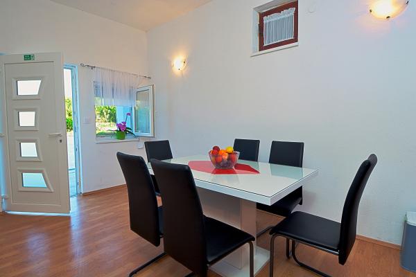 Apartament Dalmatian - Bilice, mobilat nou și complet echipat, 40 m2 la parter și 70 m2 la primul etaj, cu grădină mare și piscină. Apartamentele sunt situate într-un loc liniștit Slavica - Bilice lângă Šibenik, lângă Lacul Prokljan. Ideal pentru oamenii cu copii și pentru cei care doresc pace, liniște și relaxare, precum și aproape de cele două parcuri naționale Krka și Kornati. Casa se află la 5 minute cu mașina de plajă, la 10 minute de centrul orașului Sibenik.