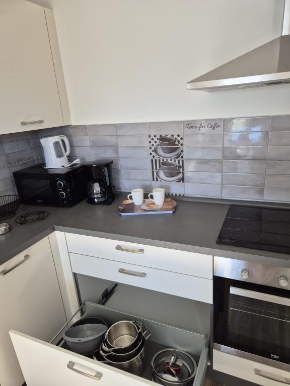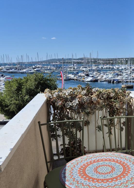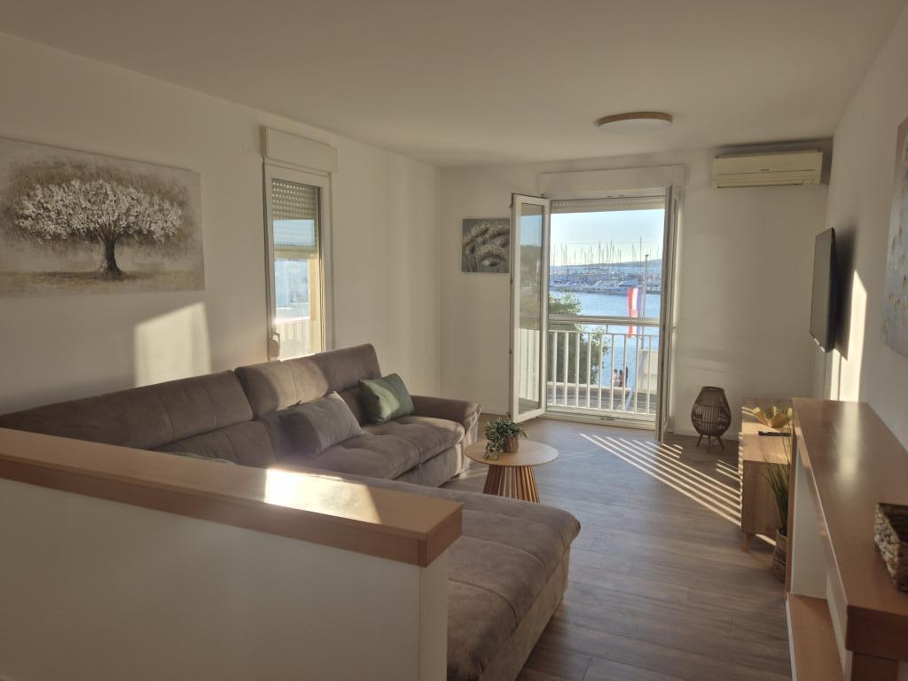 Apartament în Biograd na Moru, chiar în centrul orașului, pe primul rând la mare, cu o priveliște frumoasă. Apartamentul se află la 20 m de mare, două plaje la aproximativ 450 m distanță. Două balcoane de unde vă puteți bucura de o priveliște frumoasă asupra mării și a orașului. Ideal pentru o familie și toate facilitățile sunt la îndemână. Două dormitoare pentru 2+3 persoane.