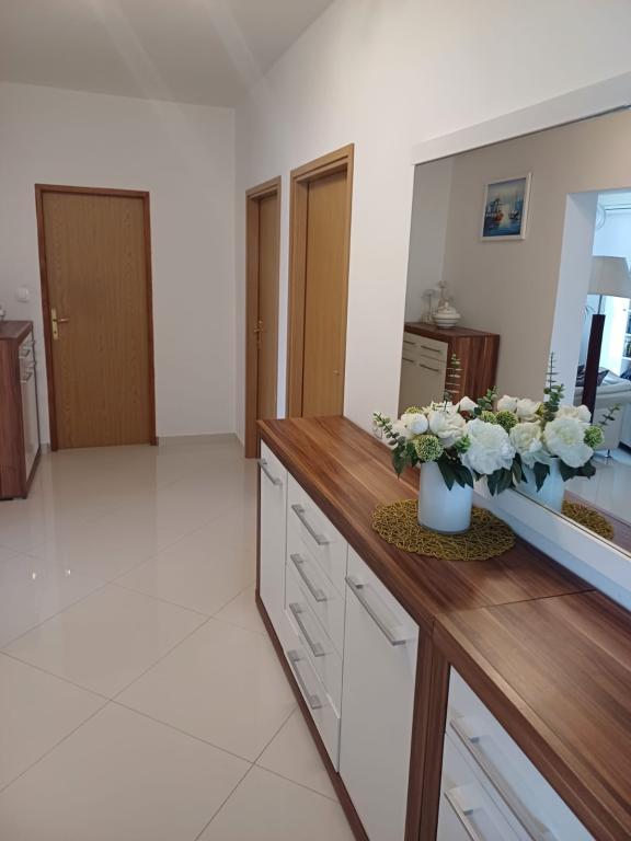 Apartament frumos. Spațios, ordonat, complet utilat și extrem de curat. În apartamentul în sine am avut tot ce ne trebuia și mult mai mult. De la ustensile de bucătărie, mașină de spălat vase, televizor cu o mulțime de canale, paturi confortabile, plase de țânțari la toate ferestrele, o terasă plăcută, parcare păzită, apropierea de plajă... Întregul apartament dă impresia că gazda a depus un efort deosebit pentru a le oferi oaspeților o experiență maximă de relaxare. Și au reușit acest lucru. Aș dori în special să subliniez că apartamentul este extrem de curat și ordonat. Cred că nici cei mai exigenți oaspeți nu ar putea găsi o singură plângere cu privire la curățenia și ordinea apartamentului. În cele din urmă, toate laudele pentru gazdă. Este extrem de amabilă, primitoare și disponibilă pe tot parcursul sejurului. Nu putea fi mai bine!