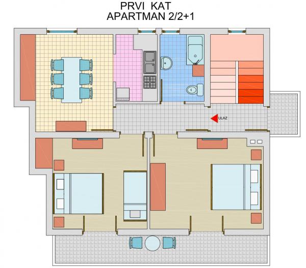 Casa de familie în cazul în care apartamentele sunt situate în centrul orașului, la marginea Forest Park Soline din care facilități de divertisment principala plajă, terenuri de tenis, disco și alte. Casa are trei apartamente si un apartament studio pentru două persoane, un apartament pentru patru persoane si un apartament cu doua dormitoare pentru un total de cinci persoane. Apartamentele sunt echipate cu toate instrumentele de bază necesare și SIDA. Apartamentul este activat Wi-Fi gratuit, fiecare apartament are un balcon și aer condiționat. In curte este un gratar. Korištelnje gratar este gratuit. Este posibil de a parca într-un garaj și un loc de parcare de lângă casă, iar altele sunt locuri de parcare langa casa.