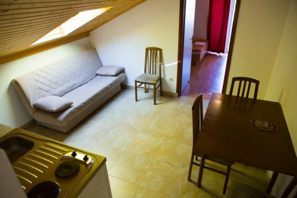 ZONA LIBERĂ CORONA - Apartamente complet echipate și casă mobilă într-o locație frumoasă într-o zonă liniștită din Biograd na moru. Acestea sunt situate într-o pădure de pini, lângă principalele plaje ale orașului, plaja cu nisip Soline și plaja cu pietriș Dražica, centrul de tenis Biograd, iar de centrul orașului Biograd la doar 10 minute de mers pe jos. Plaja se află la 5 minute de mers pe jos, la umbra unei păduri de pini. Nu este nevoie să folosiți o mașină, deoarece toate facilitățile sunt la îndemână. Apartamentele pot găzdui maxim 3 persoane, dimensiunea 30 m2, iar casa mobilă de 4 persoane. Sunt complet mobilate și dotate cu aer condiționat și au balcoane (cu vedere la pădure și vedere la oraș). Conexiune gratuită la internet wireless. Animale de companie binevenite. În fața clădirii de apartamente sunt disponibile locuri de parcare gratuite. Apartamentele standard sunt situate la parter, primul și al doilea etaj, iar mini apartamentul este situat la mansardă (mansardă) cu o logie.