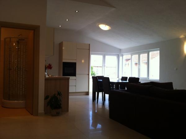 Noile caracteristici apartament modern, cu vedere la mare, situat la doar 57 de metri de plaja de nisip și de mers pe jos doi kilometri lungime. Kuhinja.Klimatiziran complet echipat cu WiFi. Este ideal pentru un sejur cu copii și vârstnici persons.we închide magazin, produse de panificație, cafenea, mjenjačnica.U Apartamentul are o grădină unde oaspeții pot sta. Echipamentelor sale oferă konfor.Dobrodošli.