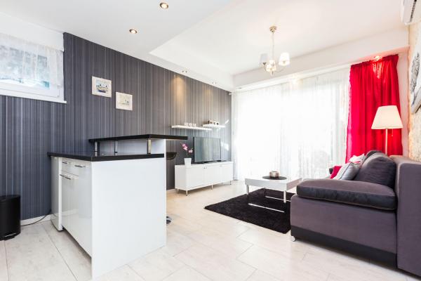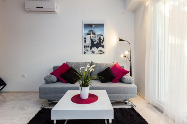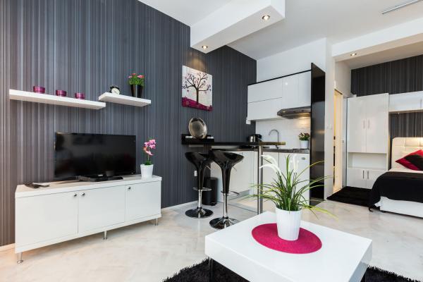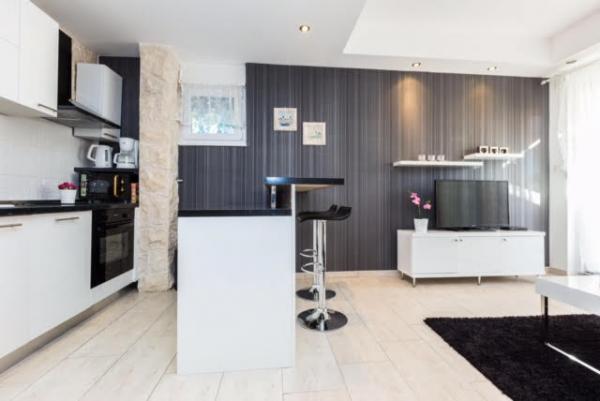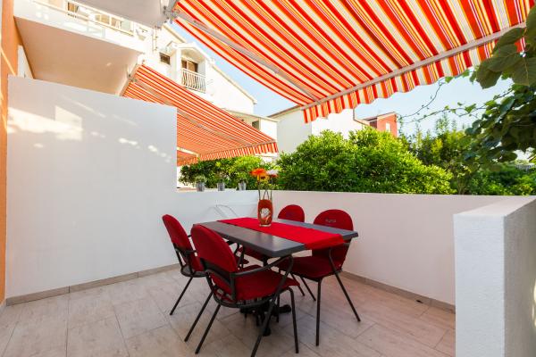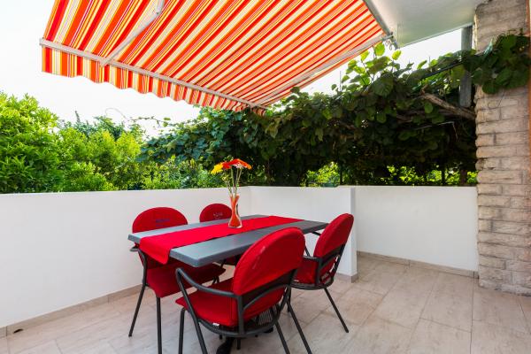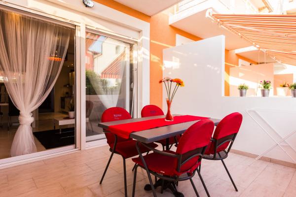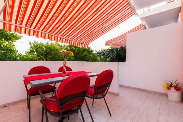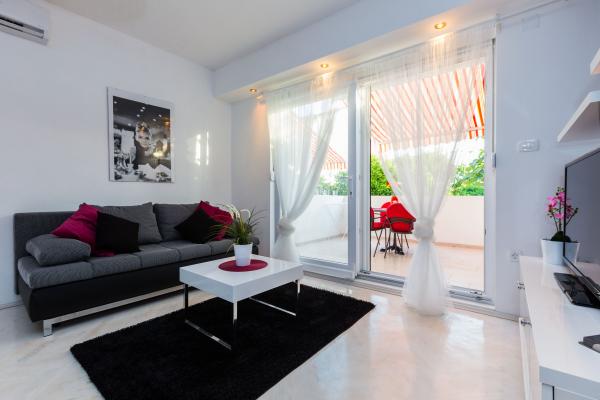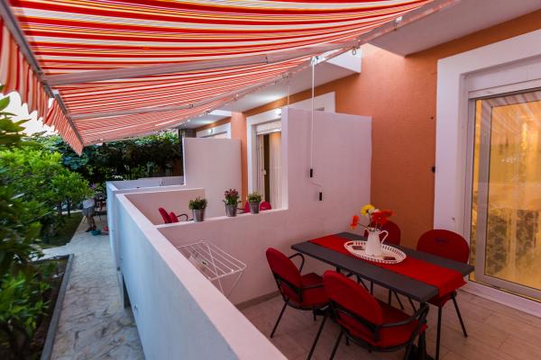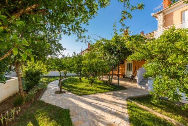 Apartamente de lux in centrul, situat la 7 minute de plajă și la 10 minute de mers pe jos de orașul vechi. De brand nou și complet echipate, fiecare apartament are o intrare separată și o terasă unde vă puteți relaxa în nopțile calde de vară. Ele sunt înconjurate de o grădină frumoasă, cu copaci, portocale și lămâi. Nuanta natural oferă kiwi Loznica sub care este un leagăn, unde vă puteți bucura de ex. O băutură răcoritoare. Pește proaspăt pot coace pe grătar în grădină și de a folosi un tabel în foișor grădină. Casa este situata, astfel încât să se apropie și totuși există o oaza de liniste, care vă permite să se odihnească și relaxare. 70 m distanță este un supermarket și un port de agrement, și 200 m centru comercial. Fiecare apartament dispune de parcare, aer conditionat, TV prin satelit, WiFi, internet, seif, cuptor cu microunde, ceainic, filtru de cafea, prajitor de paine, mixer, fier de călcat, fier de călcat, uscător de păr și așa mai departe. Fiecare oaspete stau in apartamentele noastre de 7 zile și mai mult devine cină gratuită la restaurantul nostru Roko și toate celelalte zile de 10% reducere, precum și toate oaspeților noștri.