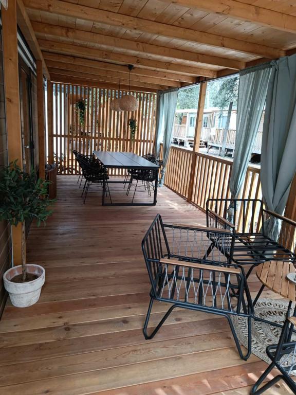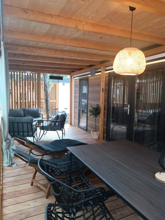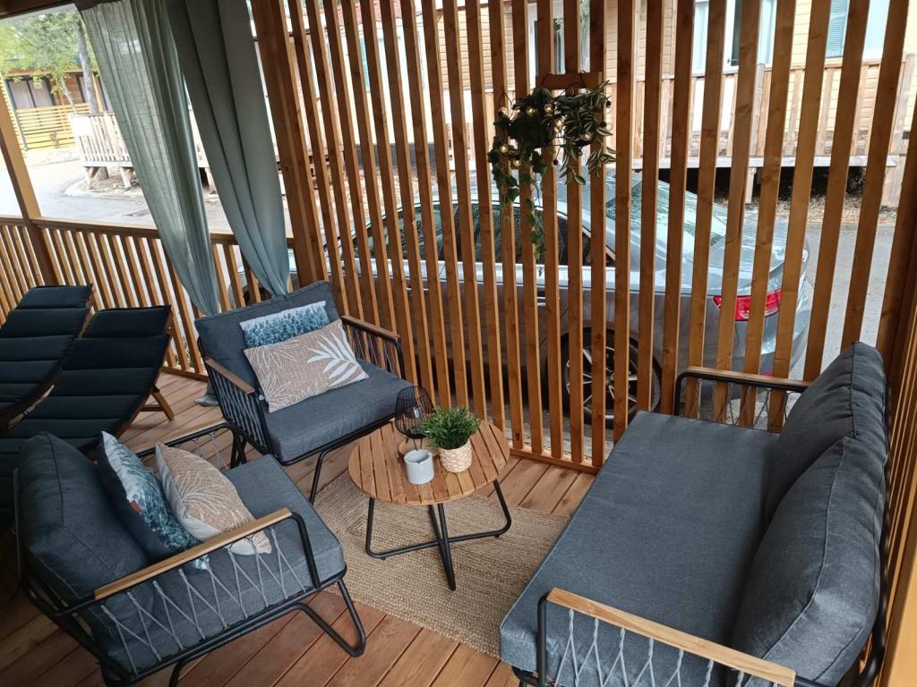 Casa mobilă modernă InnMare 1, situată într-o zonă liniștită a taberei Soline, într-o pădure de pini, este locul perfect pentru o vacanță în familie. Cu o suprafață de 32 m2, este formată dintr-un dormitor cu pat dublu, un dormitor cu două paturi de o persoană, un living cu canapea extensibilă (1-2 persoane), două băi separate cu toaletă, o terasă de 32 m2, o curte mică și un loc de parcare. Proprietatea este complet mobilată, bucătăria, pe lângă dotările standard, conține și un cuptor cu microunde, un fierbător electric și un espressor. Terasa este dotată cu o masă suplimentară, șezlonguri pentru un pui de somn perfect, asezonat cu parfumul pinilor, iar lângă proprietate se află un grătar, care este, de asemenea, o parte integrantă a dotărilor pe care oaspeții le pot folosi. Lângă proprietate există și un loc de parcare pentru un vehicul pe care oaspeții îl pot folosi. Bine ați venit la InnMare 1, o proprietate modernă destinată unei vacanțe liniștite și idilice în familie într-o pădure de pini liniștită, în apropiere de mare, plaje și Biograd na moru!