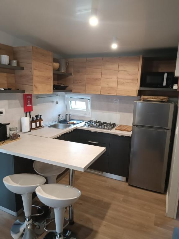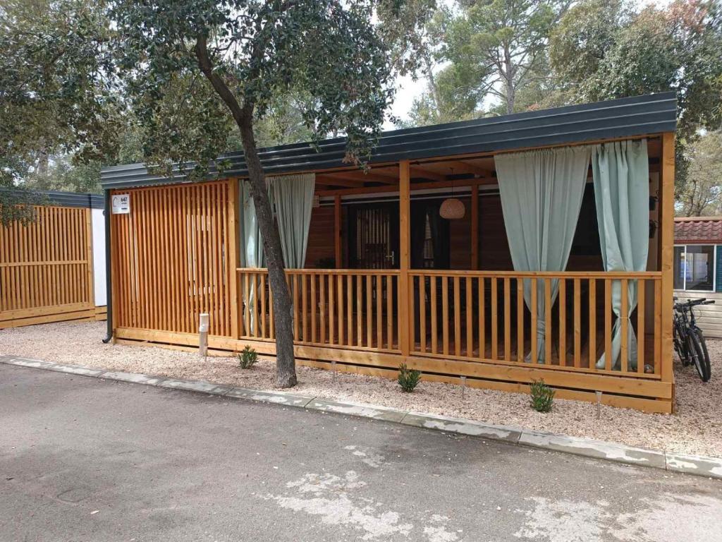 Casa mobilă modernă InnMare 646, situată într-o zonă liniștită a campingului Soline, într-o pădure de pini, este locul perfect pentru o vacanță în familie. Cu o suprafață de 32 m2, este formată dintr-un dormitor cu pat dublu, un dormitor cu două paturi de o persoană, un living cu canapea extensibilă (pentru 1-2 persoane), două băi separate cu toaletă, o terasă de 32 m2, o curte mică și un loc de parcare. Proprietatea este complet mobilată, bucătăria, pe lângă dotările standard, conține și un cuptor cu microunde, un fierbător electric și un espressor. Terasa este dotată cu o masă suplimentară, șezlonguri pentru un pui de somn perfect, asezonat cu parfumul pinilor, iar lângă proprietate se află un grătar, care este, de asemenea, o parte integrantă a dotărilor pe care oaspeții le pot folosi. Lângă proprietate există și un loc de parcare pentru un vehicul pe care oaspeții îl pot folosi. Bine ați venit la InnMare 646, o proprietate modernă destinată unei vacanțe liniștite și idilice în familie într-o pădure de pini liniștită, aproape de mare, plaje și Biograd na moru!