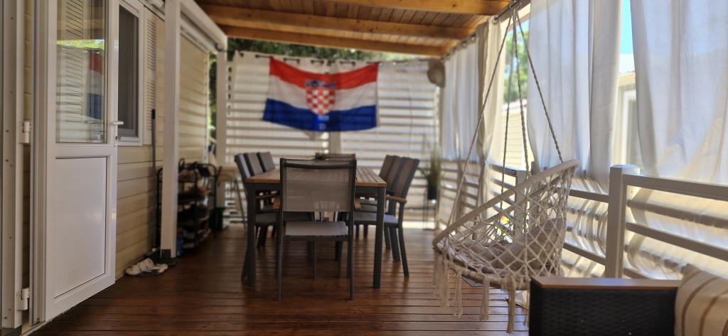 Mobile Home Korina este situată în Biograd na Moru, la 200 de metri de plaja Soline și la 750 de metri de plaja Dražica. Oaspeții au la dispoziție un loc de joacă pentru copii și o recepție deschisă nonstop. Această proprietate de pe malul mării oferă acces la un patio, parcare privată gratuită și WiFi gratuit. Apartamentul este compus din 2 dormitoare (una cu pat matrimonial si cealalta cu 3 paturi), in living exista o canapea extensibila, iar daca este necesar, exista si un patut. Un TV cu ecran plat cu canale prin satelit, o chicinetă utilată cu frigider și mașină de spălat vase, precum și 2 băi cu duș și duș în aer liber. La proprietate sunt disponibile prosoape și lenjerie de pat. Oaspeții pot folosi facilitățile de grătar din apartament. Punctele de interes populare din apropierea unității includ plaja Lumbrak, Muzeul Patrimoniului Biograd na Moru și Marina Kornati și parcul acvatic Dalmaland. Cel mai apropiat aeroport este Aeroportul Zadar, situat la 20 km de Mobile Home Korina.