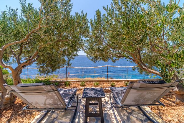 Apartament unic. 20 de metri de mare. Parcare privată (2 mașini) și intrare privată la plajă, care se află la 50 de metri. Apartamentul este singurul cu aer condiționat din acest golf, iar oaspeții pot folosi WiFi gratuit, 2 e-bike și 2 SUP-uri - Pe terasă există și un duș în aer liber cu vedere la mare. Acest anunt include 2 apartamente separate - incluse in pret. Primul este un apartament mai mare de 40m2 cu două dormitoare (1 pat dublu, 1 pat de o persoană și o canapea extensibilă pentru un adult sau doi copii mai mici), bucătărie, baie și living. Al doilea este o garsonieră la subsol (aproximativ 10 m2) cu pat supraetajat, baie și pat suplimentar. Apartamentele au fost nou construite in 2018. Apartamentele sunt complet autonome și sunt alimentate de panouri solare. Apartamentul este conectat cu un alt apartament identic pe care familia noastra il foloseste si care nu este inchiriat. Veți fi singurii oaspeți și veți avea o intrare separată la plajă. Plaja din Vela Farske este ușor tăiată și una dintre rarele perle ale insulei Brač.