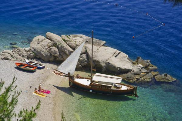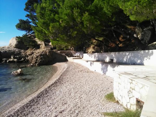 apartament studio este situat într-un golf liniștit Jakiruša departe de plaja mai puțin de un minut de mers, 10m deasupra nivelului mării, înconjurat de o pădure deasă de pini în natura neatinsă, cu vederi frumoase ale insulelor Brac si Hvar. La plajă din apropiere puteți găsi locul ideal pentru a vă relaxa, bucura de sunetul valurilor și climatul mediteranean frumos. Studio Apartamentul este situat la parter, pe circa 30 m2 de terasa privată interioară și exterioară. Terasa de pe care face parte din domeniul maritim cu vedere la mare, plaje și insule. Studioul este format dintr-o cameră cu un pat și paturi supraetajate, baie și bucătărie cu aragaz și frigider și congelator. Prosoape, hârtie igienică, prosoape de bucătărie, lichid de spălat vase și lenjeria de pat sunt incluse. Loc de parcare, taxa de statiune si utilizarea serviciilor Wi-Fi sunt incluse. Și cameră 1 sunt amplasate la etajul al doilea, două camere au o baie separată și un balcon cu vedere la mare și insule