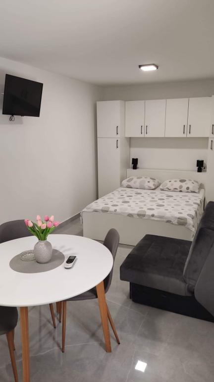 Apartamentele recent decorate sunt situate la 5 minute de mers pe jos de plajă și la 10 minute de mers pe jos de centru și restaurante. Parcarea în fața casei este inclusă în preț. Plajele din Brela sunt decorate cu multă umbră naturală, ideale pentru o vacanță cu copii.