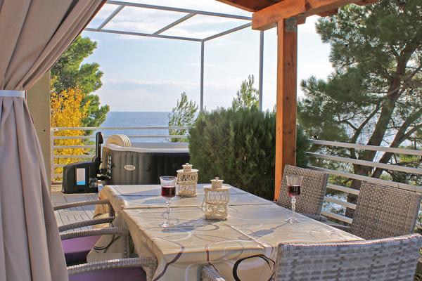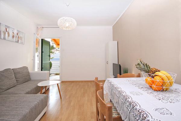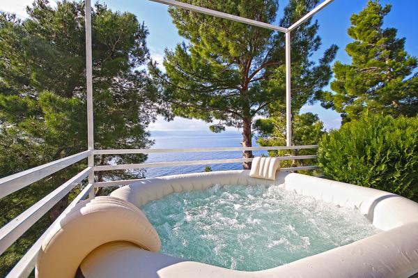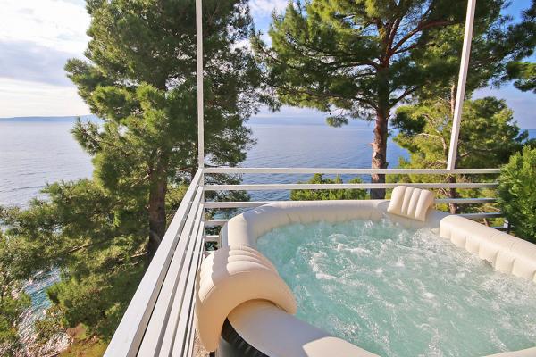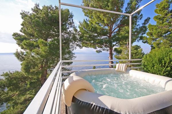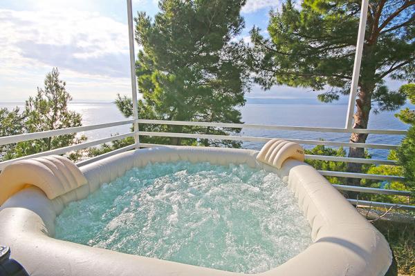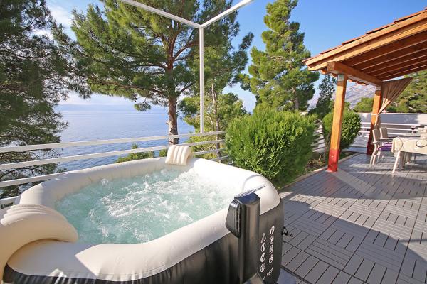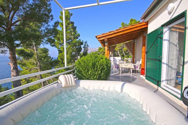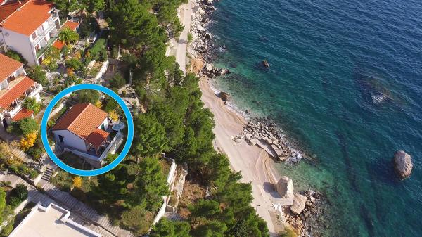 complet echipate toată casa într-o parte liniștită din Brela. Nu există alți clienți sau proprietar, intrare separata, complet împrejmuite oferă intimitate superioară. Casa este situată la doar 40 de metri de plajă. Casa este dotată cu un maxim de 5 persoane. O camera pentru trei persoane și o canapea extensibilă în camera de zi pentru două persoane. Casa are o terasă mare pentru jacuzzi și vedere la ocean. Mai jos casa este o promenadă lungă de 6 kilometri și oferă o plimbare romantică la sunetele valurilor!