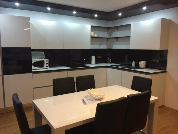 Oliva Apartamentele sunt situate în centrul de Brist, și sunt situate la 10 m de plaja, mare și malul mării. Va oferim apartament de lux tip de cazare, cu posibilitatea de a contracta o jumătate de bord într-un restaurant din apropiere. Există două apartamente de 118 și 125 m2, cu balcoane și terase mari cu vedere la mare. Apartamentele sunt dotate cu aer condiționat, televizoare in camere si terase de viață și de conexiune la internet wireless. Aveți posibilitatea să utilizați un pat suplimentar, pătuț și de alimentare disponibile la cerere. Pentru toate vehiculele asigurat locul de parcare. Aproape de casa este un magazin, o brutărie, o cafenea, un restaurant și un magazin de fructe. De asemenea, există posibilitatea de a contracta excursii cu barca de o zi la insulele din apropiere și pe seară căile navigabile pitorești.