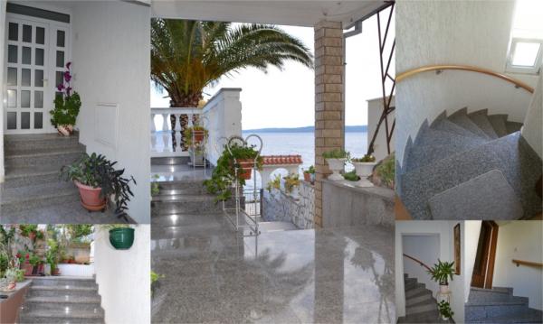 Palma Apartamentele sunt situate pe insula Ciovo, 3km de departe una dintre cele mai frumoase orase ale orașului coasta Adriaticii din Trogir, care este asociat cu podul. Apartamente complet mobilate sunt situate într-o casă de familie, cu o mulțime de verdeață și de plante mediteraneene, la mare, cu o plajă privată, departe de trafic și zgomot, și o vedere frumoasă la mare și insule. Apartamentul de la primul etaj (60 m2), constă dintr-un dormitor, bucatarie, sala de mese, living cu pat dublu, baie cu duș și mașină de spălat și un balcon cu vedere la mare. Apartament de la parter (120 m2) este format din trei dormitoare, baie cu duș, o bucătărie (cu mașină de spălat vase), living și o terasă semi-închise de mare (30 m2), cu zonă de luat masa și o canapea extensibilă și o vedere la mare. Apartamente au echipament complet (aer conditionat, internet, satelit, masina de spalat rufe si masina de spalat vase). Oaspeții pot folosi grătar, duș în aer liber și parcare privată.