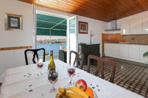 Apartamentul este recent decorat și complet utilat și este singurul de închiriat din complex. Este situat la etajul 1, cu o terasă de 18 m2, cu o priveliște frumoasă asupra insulei Šolta și a mării, care se află la 30 m distanță. Apartamentul este situat într-un mediu liniștit și verde. Nu există trafic de vehicule sau pietoni. Mediul este populat de păsări și le puteți auzi cântecul de dimineața până seara. Plaja se află la 150 de metri de apartament sau la aproximativ 3 minute de mers pe jos. Plajele sunt diverse, de la stâncoase, betonate, cu pietriș până la nisipoase. Complexul se află la 50 km de Parcul Național Krka și Šibenik și la 30 km de Split. Am dobândit statutul de GAZDĂ LOCALĂ.