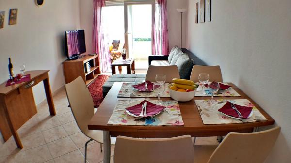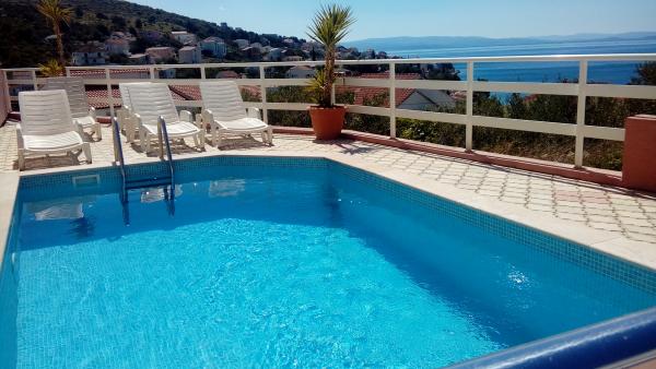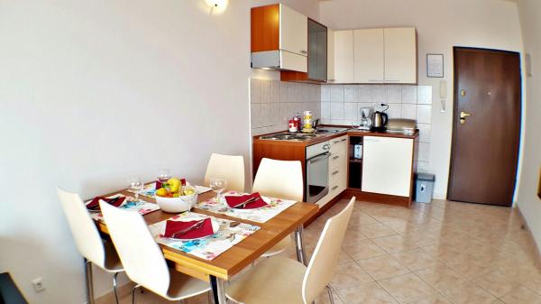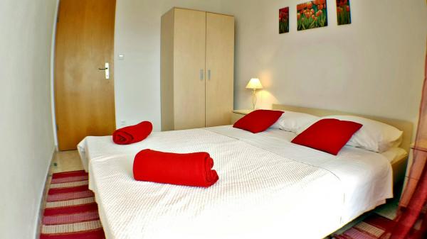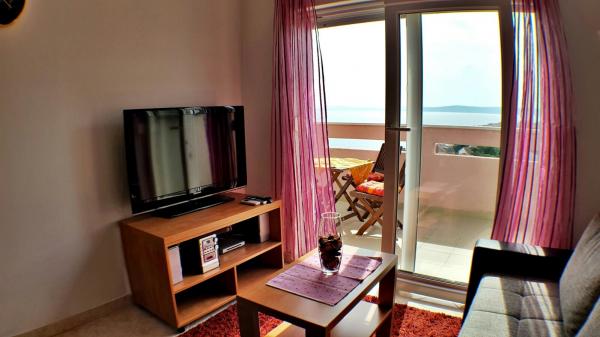 Apartamentul este situat pe latura de sud a Ciovo într-o Mavarcica liniștită. Acesta este situat la ultimul etaj al unei clădiri mici. Apartamentul este situat la doar 5 minute de mers pe jos de plajă. În afară constă dintr-un dormitor cu iesire pe terasa, bucatarie, sala de mese, living si baie cu WC suplimentar. Terasa spațioasă oferă o vedere minunată la mare și insulele din apropiere. Terasa este acoperit cu o marchiză. Apartamentul este cu aer condiționat. Wi-Fi și SAT / TV programe disponibile. În canapea camera de zi, care se transformă instantaneu într-un pat suplimentar. La parter există o piscină, care este liber să folosească și un restaurant. În cadrul clădirii este disponibilă și parcare publică. 700 de metri de apartamente sunt prevăzute cu toate facilitățile (piață, oficiu poștal, pe piață). Apartamentul este 3 la 6 km de centrul orașului. Aproape de plajă există un centru de scufundări și terenuri de tenis sunt doar 1. 5 km.