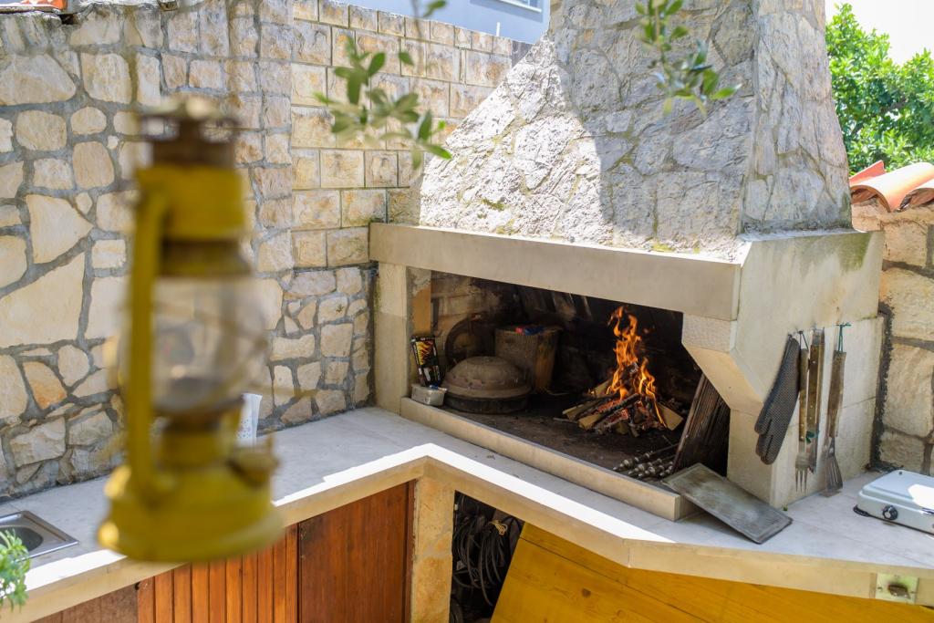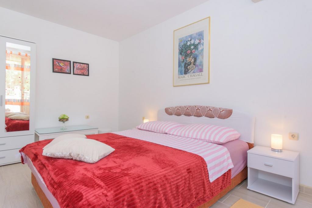 Casa cu apartamentul de la parter și aleea pavată lungimea drumurilor de 50m. cu doar două case situate într-o zonă liniștită. apartament confortabil cu 2 dormitoare și 2 băi cu 2 WC, living și bucătărie separată și o terasă și parcare în curte. Toate camerele cu aer condiționat. La dispozitia și duș în grădină. Ideal pentru oaspeții care doresc liniște și pace în umbra terasa din grădină fără alte persoane. . Proprietarul locuieste in casa cu o intrare separată și sunt disponibile pentru asistență. Facilitatea este situat la 10 minute de plajă, unde numeroase facilități (aquva parc, sporturi nautice, scufundări, biciclete, motor, mașini și bărci), există plajă încă mai silențioase. Plecare spre Trogir la fiecare 30 de minute cu barca. De-a lungul plajei promenada aproximativ 1500 de metri. Se pot organiza numeroase excursii la insulele din jur și Parcul Național Krka. Split este la numai 30 km în plus față de legăturile rutiere este de asemenea disponibil prin intermediul liniilor de transport aeroport din apropiere pentru cei fără mașină. Notă: Apartamentul este dotat cu plase de țânțari