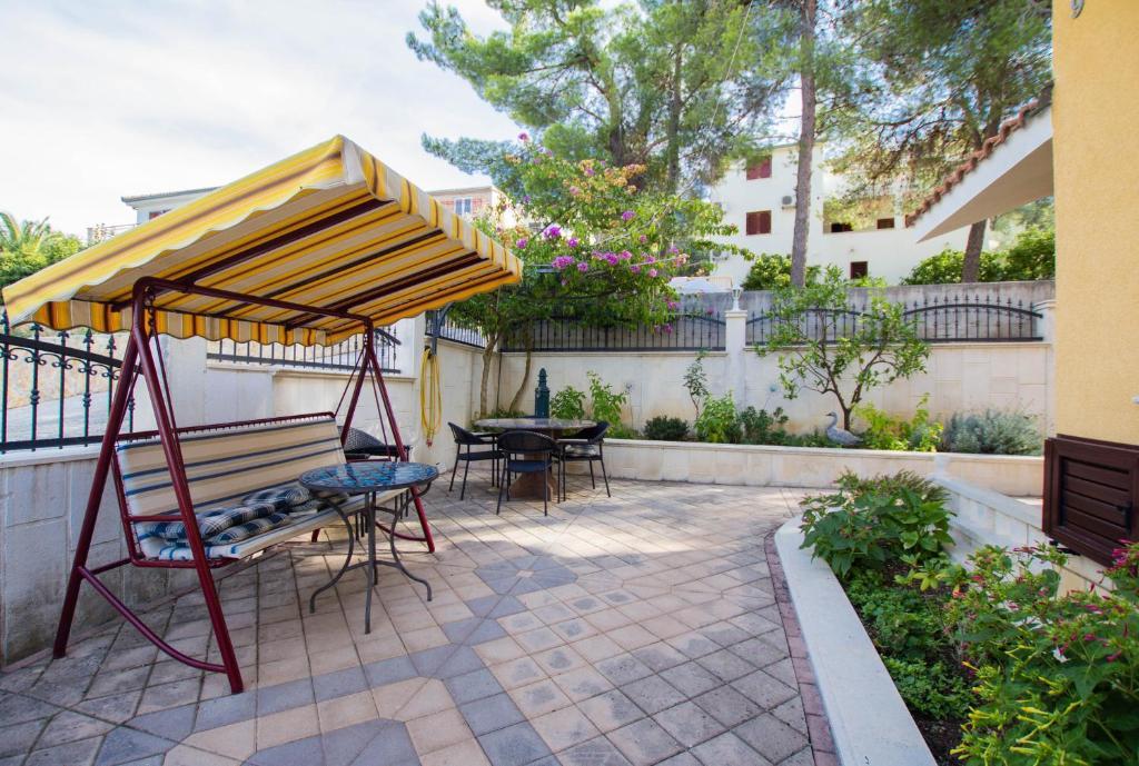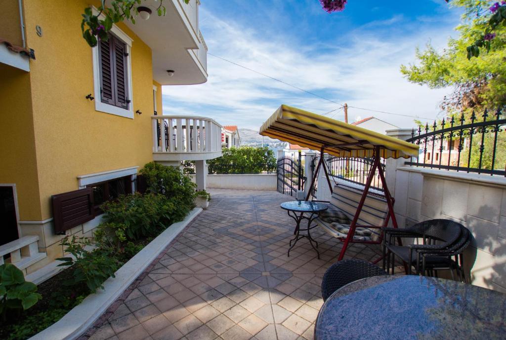 Apartamentele Anika 1 și 2 sunt situate pe insula Ciovo într-o zonă liniștită, la doar 50 de metri de mare. Proprietatea este la 5 minute de mers pe jos de primele restaurante, magazine și locuri de divertisment. Apartamentele sunt situate la etajul 2 pentru care oaspeții au o intrare separată. Fiecare apartament este format din două dormitoare și o baie. Ambele camere sunt cu aer condiționat și au acces la terase cu vedere la mare și pădure. Camerele includ, de asemenea, TV împreună cu televiziune prin satelit și acces nelimitat la internet. Fiecare apartament are, de asemenea, bucătărie proprie, care este echipată cu tacâmuri pentru 6 persoane, frigider, ceainic, un cuptor și tot ce ai nevoie în bucătărie. Parcarea este inclusă în preț. La dispoziția ta este un pavilion sub care există un grătar și o masă mare pentru 12 persoane, ideală pentru mese comune și socializare. Există, de asemenea, un leagăn sub pavilion și un mic leagăn pentru copii.