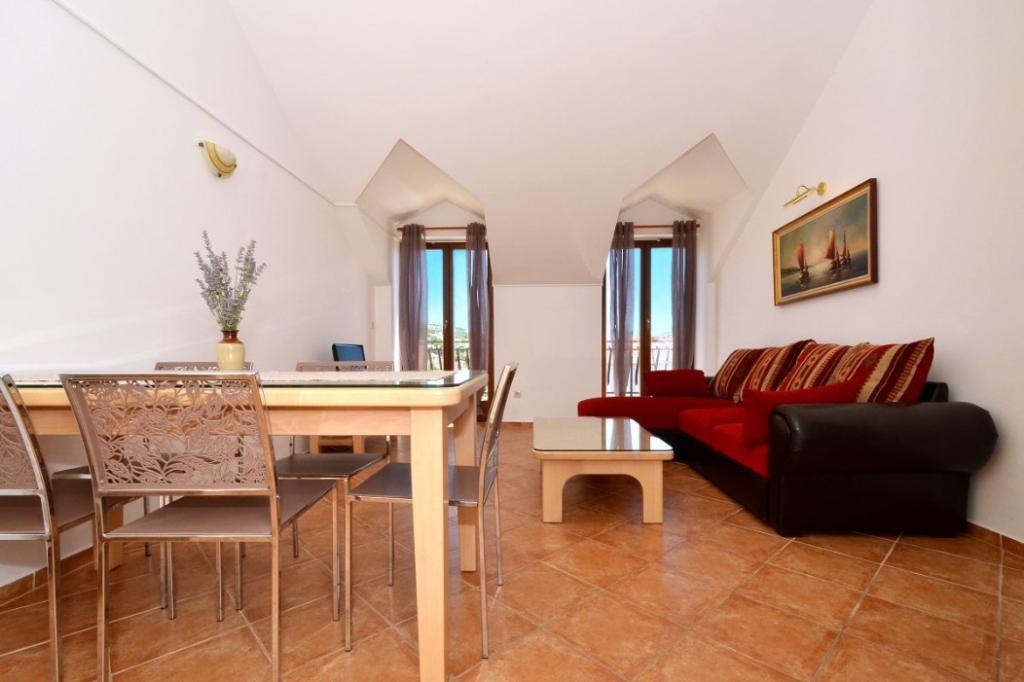 Apartamentele complet mobilate NAVI sunt situate pe insula Ciovo, cu vedere la mare, și la doar 200 de metri de prima plajă cu pietricele. Pe plajă există facilități de catering și un parc acvatic pentru copii, unde puteți închiria, de asemenea, bărci cu pedale sau plăci de surf. Fiecare apartament este format din două dormitoare, baie, cămară, bucătărie, living și terasă. Apartamentele sunt complet echipate cu tot ce ai nevoie pentru o vacanță. Apartamentul B1, situat la parter are o terasă mare de 29 m2 și acces la grădină. De asemenea, aveți parcare (1 loc de parcare pe apartament) și acces nelimitat la internet. La doar 200 de metri sunt restaurante și alte facilități de catering, în timp ce centrul, unde se află un medic, o bancă, un oficiu poștal și o piață, este la doar 400 de metri de cazarea noastră.