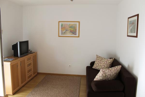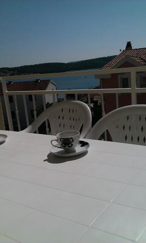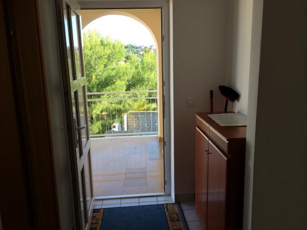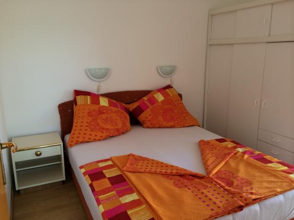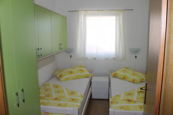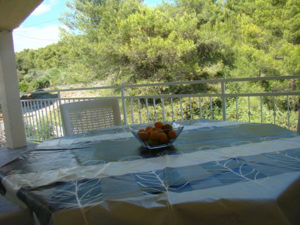 Apartamentele sunt situate 400m de la plajă, într-o parte liniștită a insulei. Bucataria este bine echipata, are o masina de spalat vase, frigider, aragaz cu cuptor și ceainic electric. Baia are o mașină de spălat și un fier de călcat și masă de călcat. Apartamentul are doua terase, una cu vedere la mare, iar celălalt cu vedere la pădure.