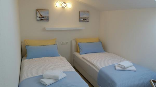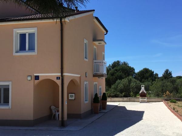 Vila Nikaraoni situat pe insula Ciovo aproape de Trogir. Apartamentele moderne și complet echipate în noua casă cu numai 4 apartamente (parter, etaj si mansarda). Casa este situata pe o liniștită și însorită, cu o mulțime de verdeață în curtea spațioasă (1000 m2). In curte sunt locuri de parcare si gratar. Balcoanele sunt spațioase și cu vedere la mare. Apartamentele sunt dotate cu bucătării noi și moderne, cu mașină de spălat vase, cuptor cu microunde, frigider mare, TV prin satelit, Wi-Fi gratuit, o mașină de spălat ... Prețul include lenjerie de pat și prosoape de plajă (nu) și servicii de curățenie.