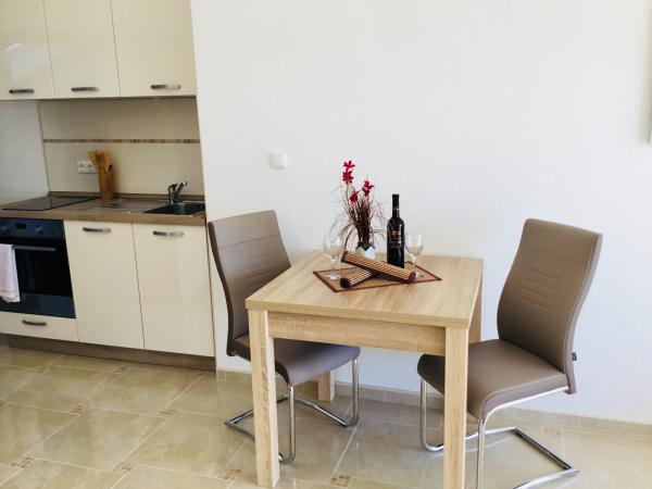 Taxa de rezidenta este inclusa in pret.Lângă (mers pe jos 10-20 min) casă există mai multe restaurante, cu o selecție largă de diverse specialități dalmate. Pe o plajă de nisip în Okrug oferă sport și de divertisment pe apă. Excursii de o zi la insulele din apropiere și parcuri naționale. In apropiere se afla un centru de scufundări. Pentru Trogir navigand cu nave la fiecare 15-30 de minute, în timpul verii. De la Trogir la Split vele de mai multe ori pe zi, cu barca (Bura linie).