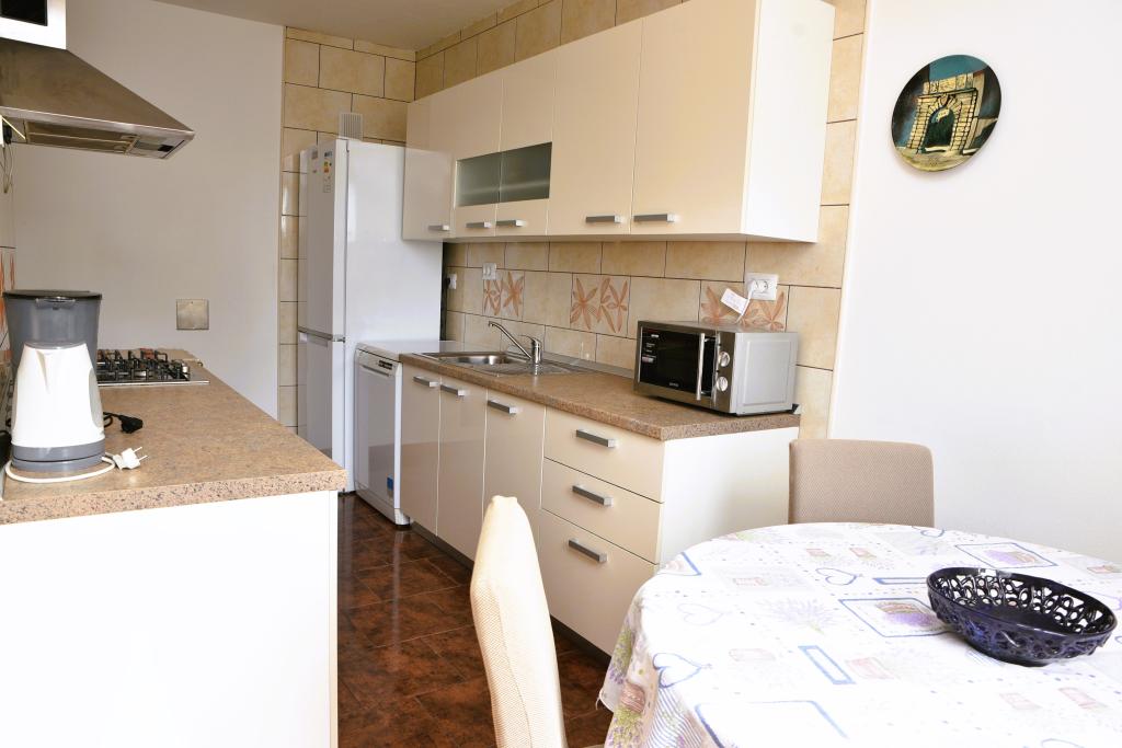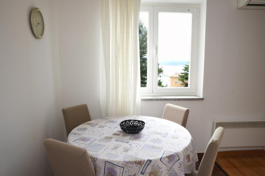 Apartamentul cu vedere la mare se bucură de o locație liniștită la al doilea (ultimul) etaj al unei clădiri mici, la 100 de metri de o plajă cu pietriș. În fața clădirii există o parcare publică gratuită cu un loc de parcare rezervat. Apartamentul (67 m2) are două dormitoare, bucătărie complet utilată, baie, living și balcon cu vedere la mare. Este disponibil WiFi gratuit. Apartamentul este situat la 5 minute de mers pe jos de plaja cu pietriș și la 10 minute de mers pe jos de centru. Cel mai apropiat magazin, cafenea și restaurant se află la 3 minute de mers pe jos de apartamente.