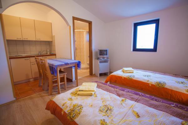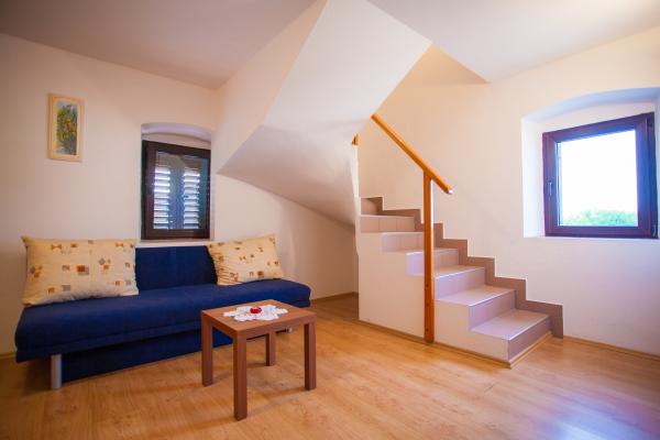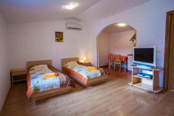 Casă frumoasă în satul Orlec la numai 10 km de orașul Cres, moderne 4 apartamente si o pajiște mare, permite intimitate și pace. Fiecare apartament are o bucătărie, baie și două paturi cu postavljanjanja posibilitate și un pat suplimentar. Apartamentele sunt complet echipate (lenjerie, prosoape, prosoape de bucătărie, tacâmuri ...) Aceasta casa are, de asemenea, o mare privat parcare și având în vedere că acesta este situat la 300m deasupra nivelului mării, puteți începe explorarea căi vechi prin plantațiile de măslini și Maquis, masina sau barci turistice. Mare și plajă sunt doar 2 km, statiune pe plaja de prundis si mare limpede oferă o experiență de neuitat pentru cel mai tânăr și de neînlocuit vacanta pentru adulți.