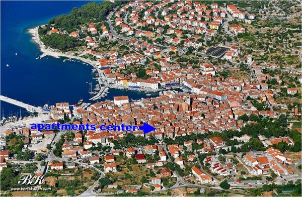 Apartamentele Centar sunt situate într-o casă renovată, situată în centrul vechi al orașului Cres. Trei apartamente sunt disponibile: apartament studio pentru 2 persoane, apatman pentru 2 persoane și apartament pentru 4-5 persoane. Apartamentele sunt dotate cu aer condiționat (în afară de apartamentele studio), au Wi-Fi gratuit, TV prin satelit și parcare privată la 200 m de casă. În imediata vecinătate se află centrul orașului, stația de autobuz și portul orașului. Adresa apartamentului este: Zagrad 26 51557 Cres Coordonatele GPS: 44. 960123, 14. 410075