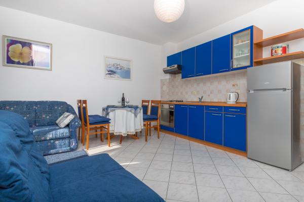 Apartament Adria LiLa este mobilat și echipat pentru a satisface nevoile unui oaspete contemporan. Acesta este situat în partea liniștită a orașului Dramalj, o stațiune turistică fermecătoare, la 3 km de centrul orașului Crikvenica. Cea mai apropiată plajă de pietriș din Pazdehova este la 300 m distanță, în timp ce cea mai faimoasă plajă naturală Kačjak durează o plimbare de 20 de minute sau 1 km cu mașina. Apartamentul are intrarea principala din partea de nord care se afla la nivelul apartamentului situat la etajul 3 al cladirii. Apartamentul este compus dintr-o bucătărie complet utilată, cu un living, un dormitor confortabil (160x200 pat) și o canapea extensibilă, un pat suplimentar în camera de zi pentru 2 persoane, o baie și o cabană cu vedere la mare, la peninsula Kačjak și insula Krk . Apartamentul este dotat cu aer condiționat, TV SAT, Wi-Fi internet wireless, iar în fața clădirii are propriul loc de parcare.