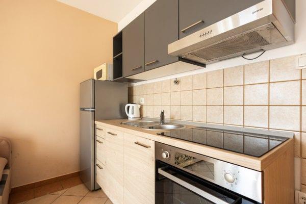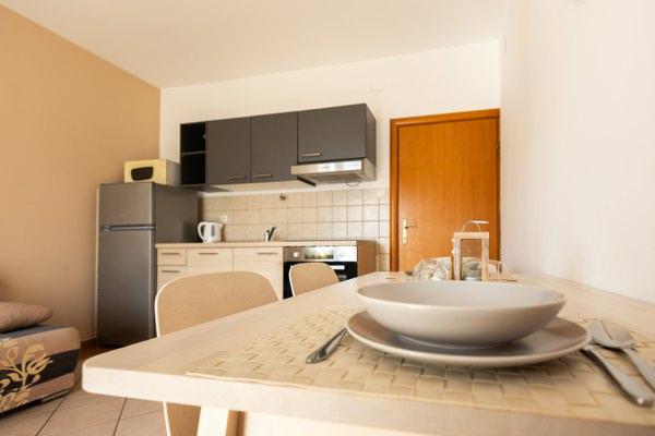 Apartamentul a fost uimitor. A fost echipat, prosoape curate, prosoape de ceai și hârtie igienică. Dormitorul era la nord și era plăcut. Teresa e grozavă. În timpul prânzului, ne-am îndreptat spre foișor la soarele de pe terasă. Este grozav la grătar și există o nuanță frumoasă. Nu este departe de mare. Singurul lucru pe care l-am pierdut în apartamentul care are cuptorul este placa. Cea mai mare surpriză pentru mine a fost "plaja plătită". Din fericire, eram aici când nu trebuia să plătim încă, nu era un sezon, dar fără rușine i sa dat în fiecare zi 15 kun. Și, din păcate, locația apartamentului se află la capătul plajei plătite, astfel că nu va mai fi nevoie de 1 km până la centrul plajei publice.