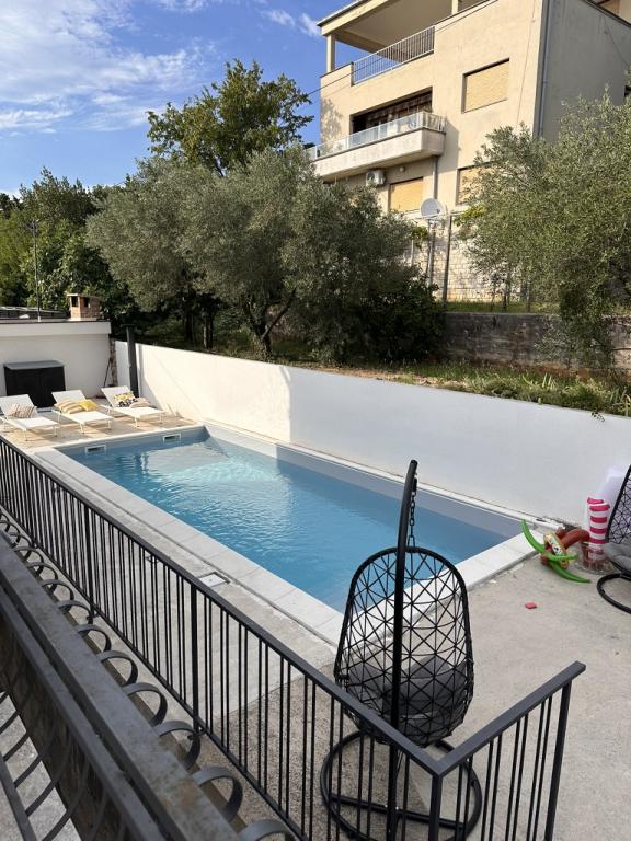 Proprietatea oferă oaspeților o piscină privată în aer liber, dotată cu un duș solar exterior, un grătar și o zonă de socializare cu o bancă și o masă robuste. Există șezlonguri lângă piscină. Piscina este deschisă între orele 09:00 și 20:00, iar utilizarea se face pe propriul risc. Regulile de utilizare și conduită sunt disponibile în apartament și pot fi convenite ulterior cu proprietarii. Notă: Piscina este deschisă între 15.05. și 01.10.2024. Parcarea se află chiar lângă proprietate.