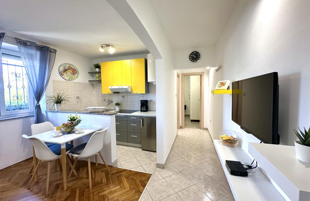 Taxa de rezidenta este inclusa in pret.Totul a fost extraordinar. Proprietarul ne-a primit cu căldură. Apartamentul a fost curat, ordonat si bine echipat. Aveam tot ce ne trebuia. Copiii au fost foarte încântați de dulciurile care i-au așteptat în frigider, precum și de suc, apă și ceai cu gheață. Un gest frumos din partea proprietarului. Magazinele Plodine și Konzum sunt în apropiere. Plaja este si ea aproape. Am mers la fiecare pe jos. Am doar cuvinte de laudă. Astfel de gazde fenomenale sunt rare astăzi. Datorită vouă, am avut o vacanță de vară de neuitat. Mulțumesc.
