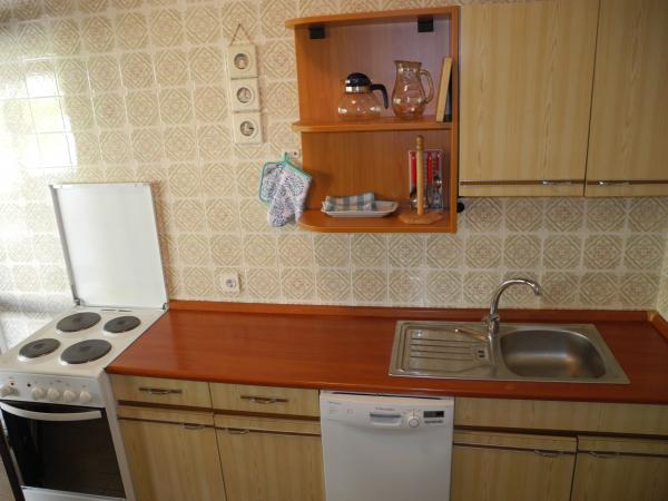 Proprietarii foarte frumos, prietenos. Apartament recomandabil. Am stat în 6 + 2. 5 adulți și 3 copii. Dar, în liniște 2 mai multe persoane ar putea potrivi. Vedere de pe terasa unde marea (un pic limitat de copac), dar atât de minunat. Plaja aproape la orice plimbare de 7-10 minute. Cea mai apropiată plajă situată pe pietriș, dar nu a cauzat probleme, în plus față de câțiva copaci a dat umbră. Coborarea la apa foarte frumos-copii ar putea scălda în voie. Pe de cealaltă parte a centrului comercial și casei Lidl. Cabană la marginea orașului, care cred că este un mare plus pentru că au existat astfel de mulțimi. În contrast, plimbare de promenada principală seara a fost o plăcere. Dacă vii la cei din jurul tău sunteți sigur de a beneficia. RECOMANDA