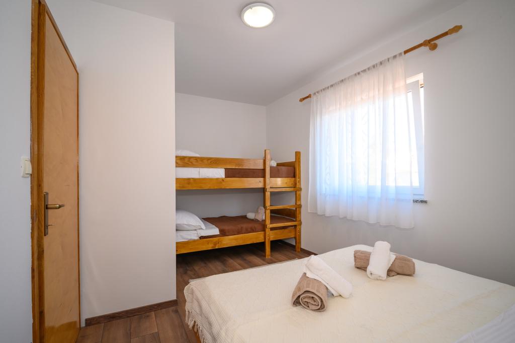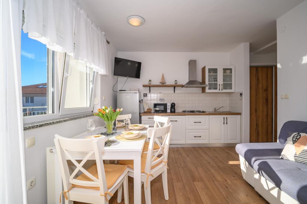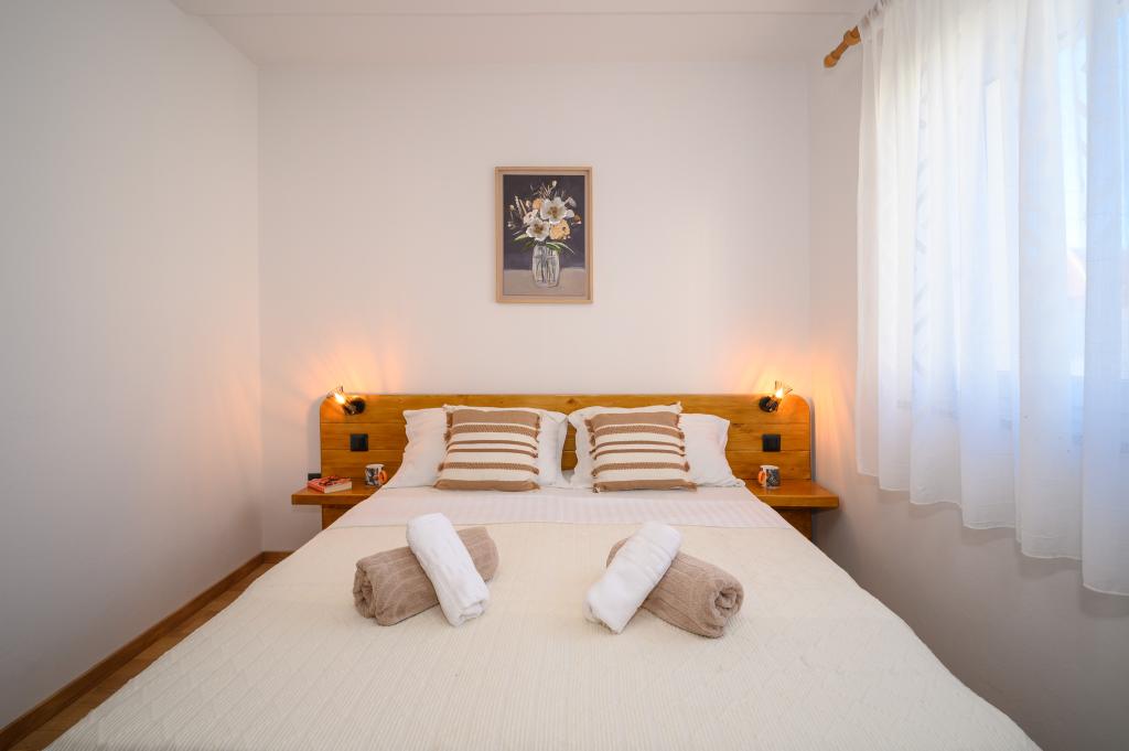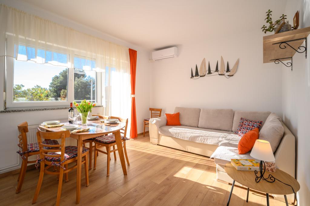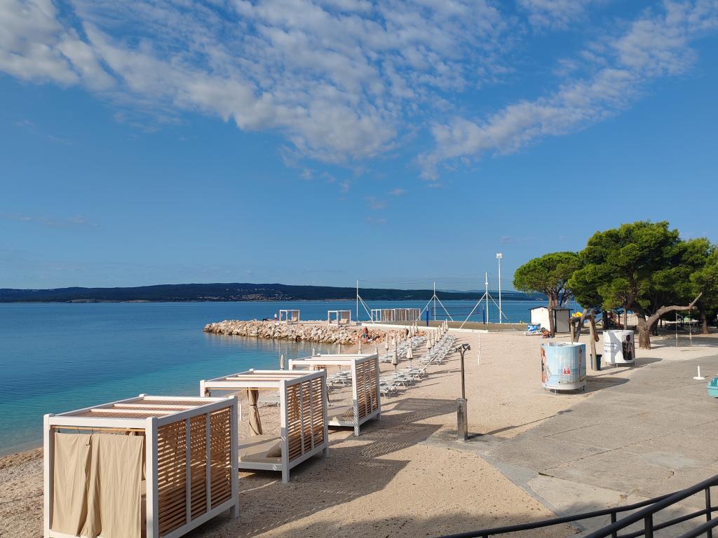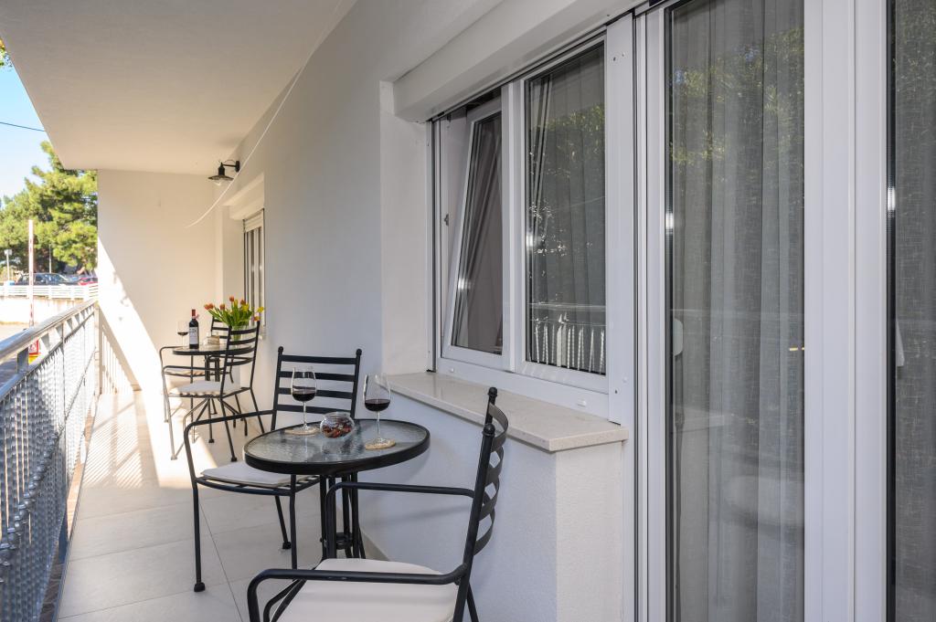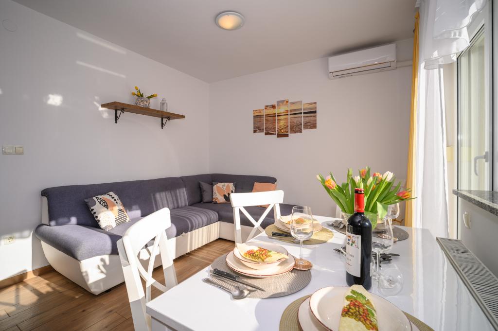 Apartamente într-o locație liniștită, la doar 50 m de plajă și la 100 m de alte facilități, cum ar fi restaurant, magazin, loc de joacă pentru copii, teren de sport. Fiecare apartament are propriul loc de parcare, iar oaspeții au acces la un grătar și o terasă mare. Prețul de închiriere include Wi-Fi, utilizarea aerului condiționat și TV/satelit. Apartamentele sunt noi, moderne și confortabil echipate și oferă o vacanță ideală fără a fi nevoie să folosiți o mașină.