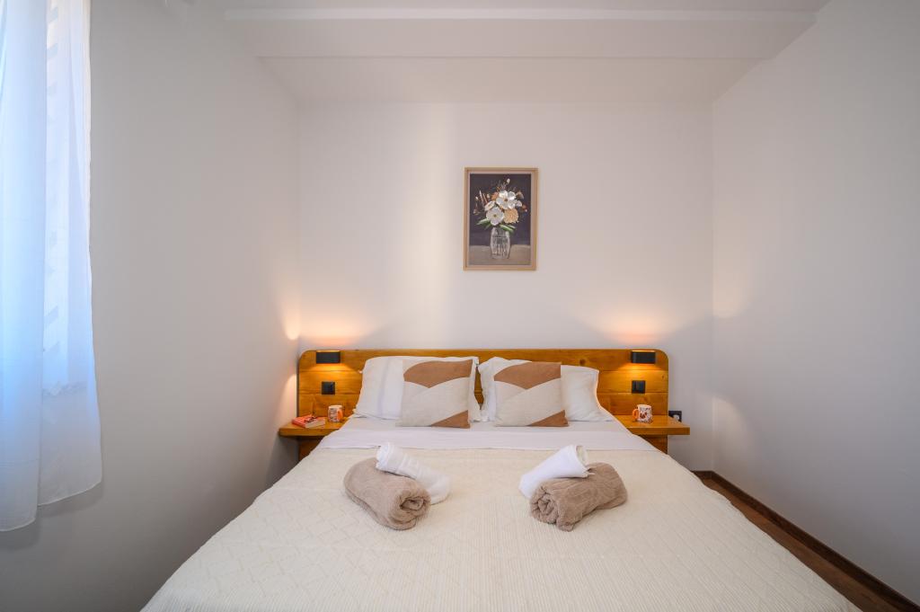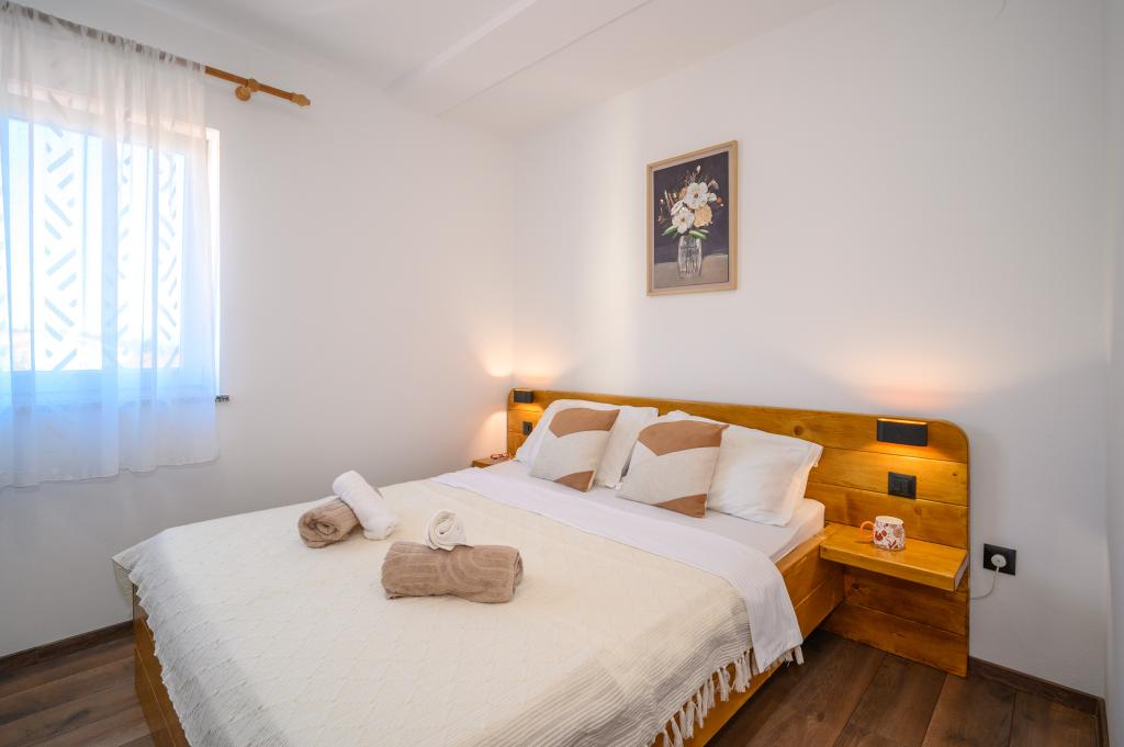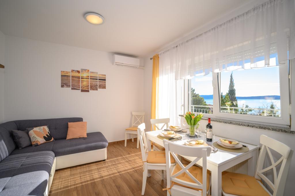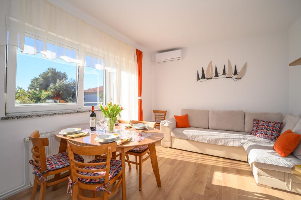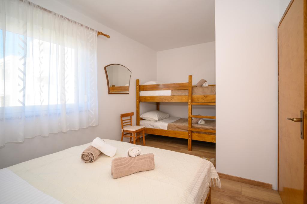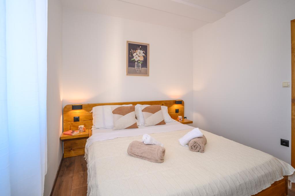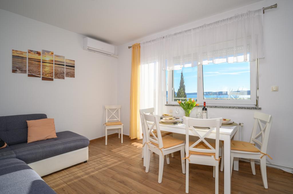 Apartamente într-o locație liniștită, la doar 50 m de plajă și la 100 m de alte facilități, cum ar fi restaurant, magazin, loc de joacă pentru copii, teren de sport. Fiecare apartament are propriul loc de parcare, iar oaspeții au acces la un grătar și o terasă mare. Prețul de închiriere include Wi-Fi, utilizarea aerului condiționat și TV/satelit. Apartamentele sunt noi, moderne și confortabil echipate și oferă o vacanță ideală fără a fi nevoie să folosiți o mașină.
