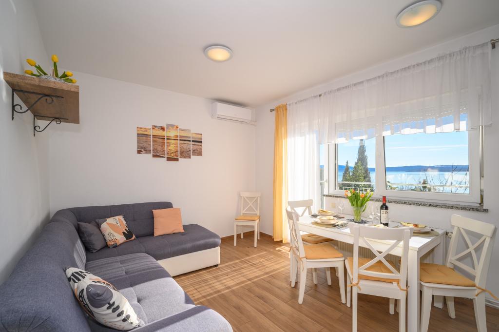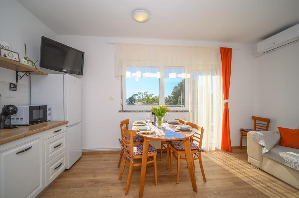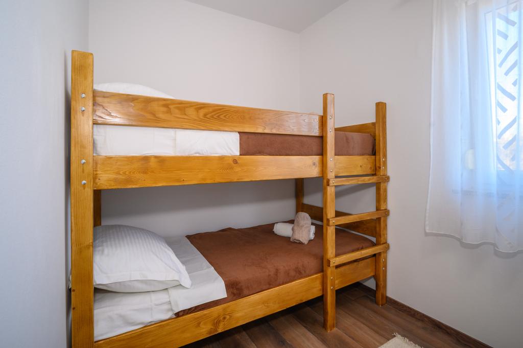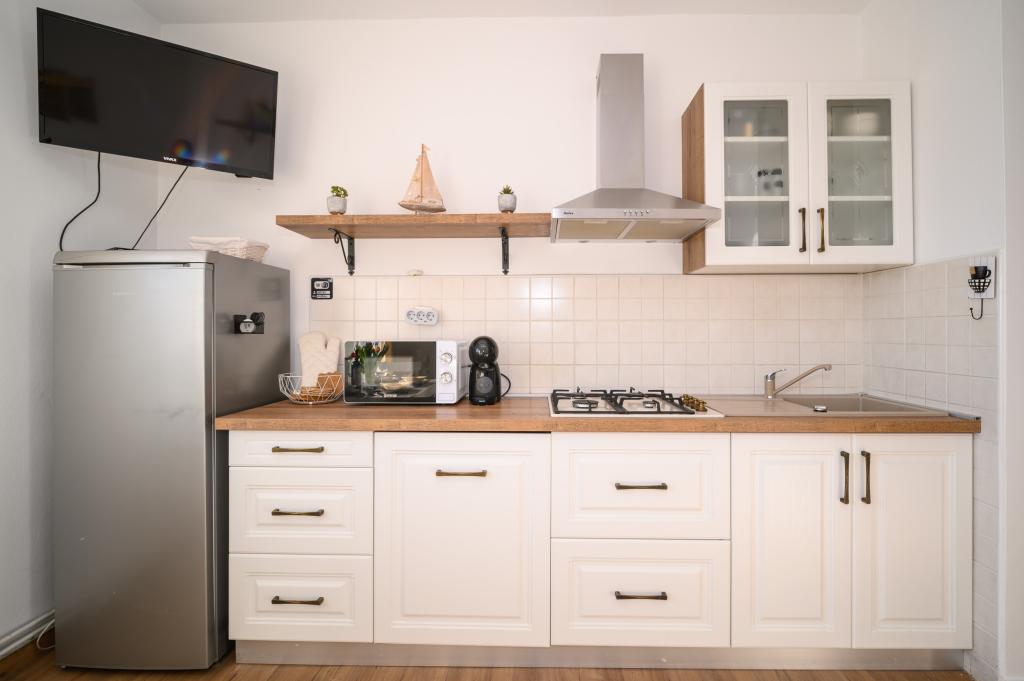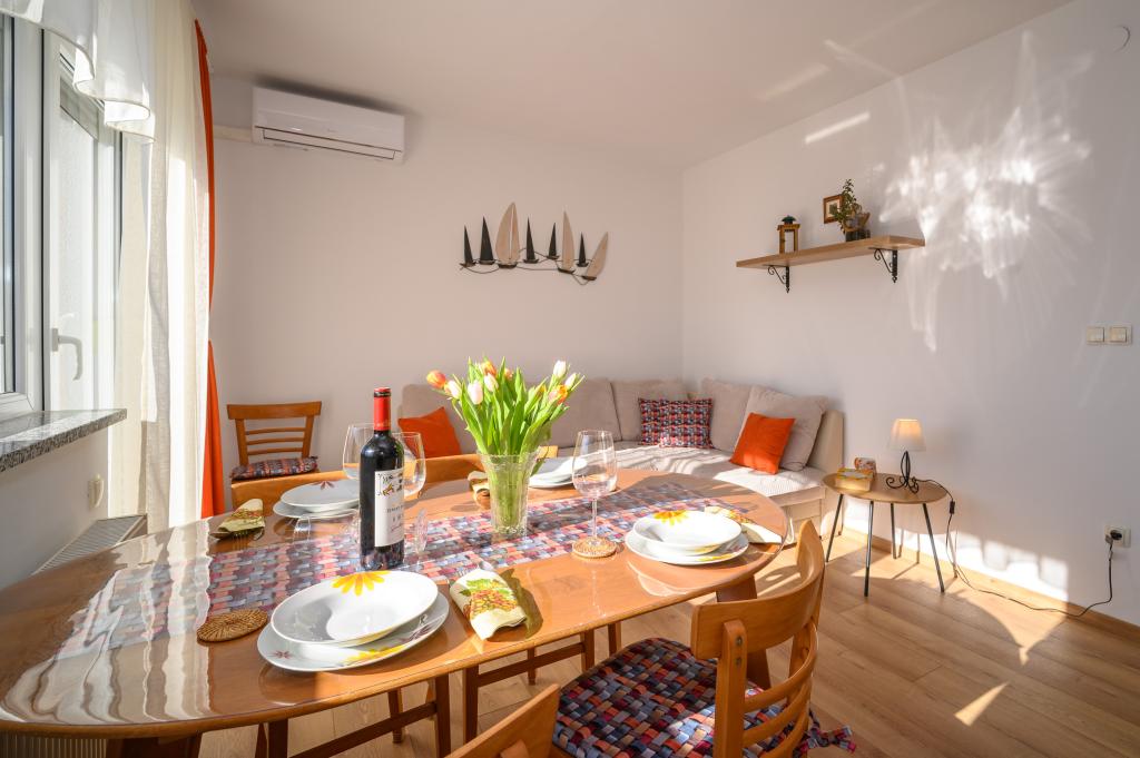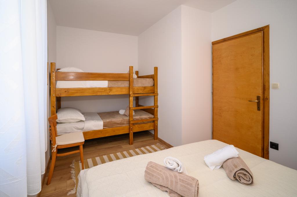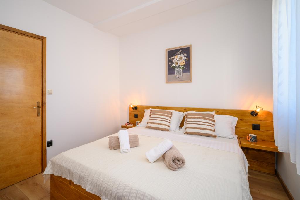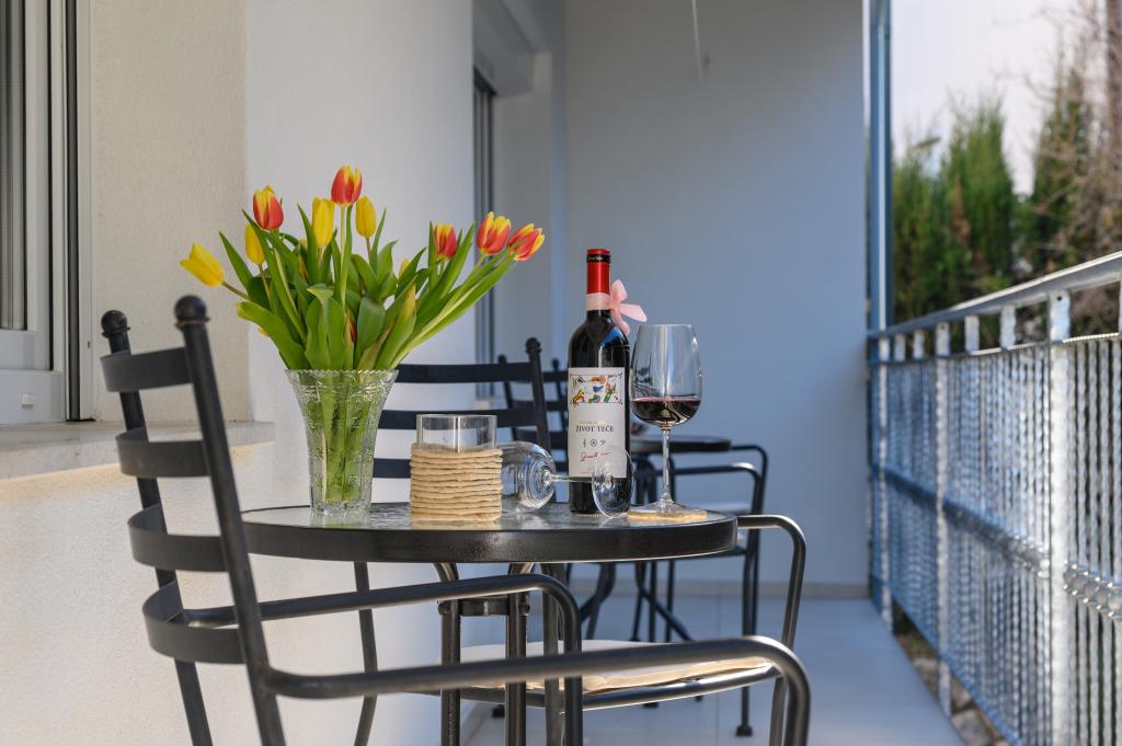 Apartamente într-o locație liniștită, la doar 50 m de plajă și la 100 m de alte facilități, cum ar fi restaurant, magazin, loc de joacă pentru copii, teren de sport. Fiecare apartament are propriul loc de parcare, iar oaspeții au acces la un grătar și o terasă mare. Prețul de închiriere include Wi-Fi, utilizarea aerului condiționat și TV/satelit. Apartamentele sunt noi, moderne și confortabil echipate și oferă o vacanță ideală fără a fi nevoie să folosiți o mașină.