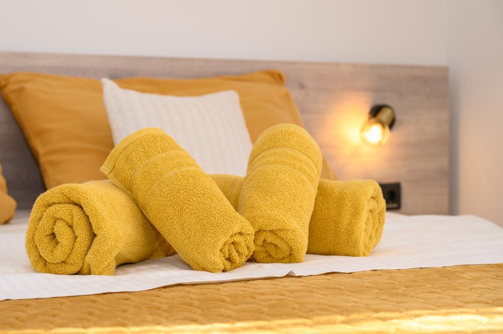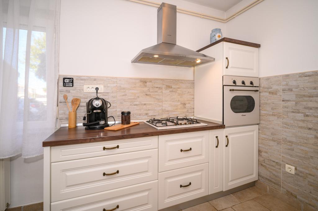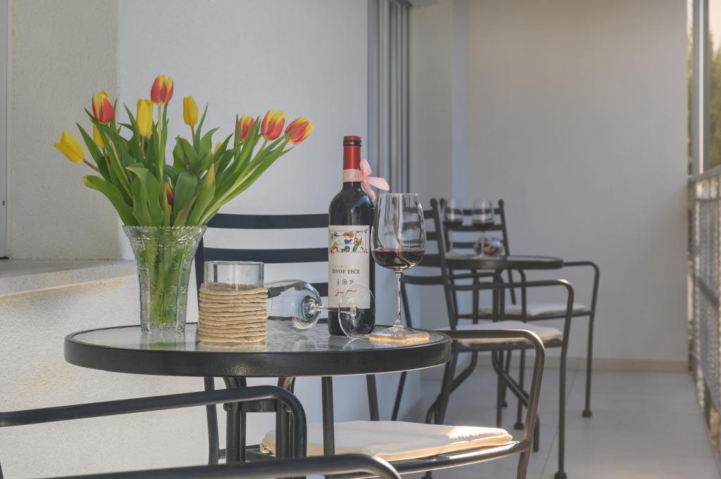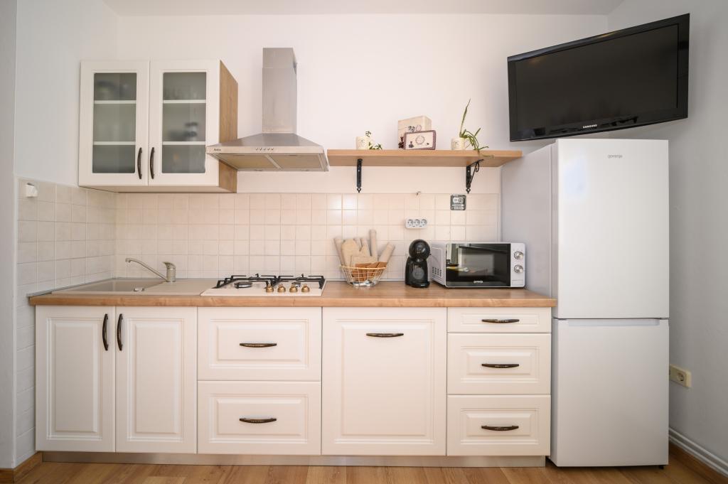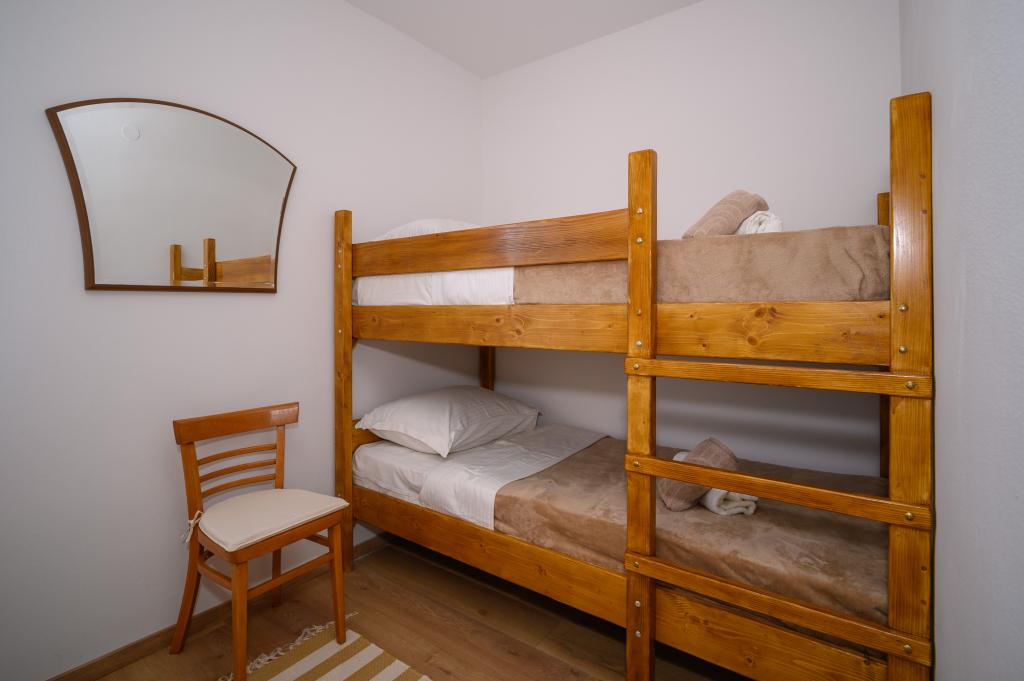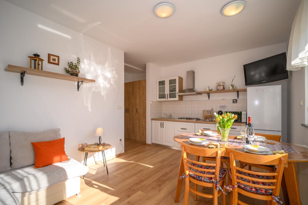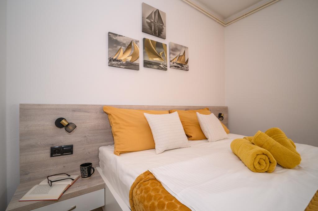 Apartamente într-o locație liniștită, la doar 50 m de plajă și la 100 m de alte facilități, cum ar fi restaurant, magazin, loc de joacă pentru copii, teren de sport. Fiecare apartament are propriul loc de parcare, iar oaspeții au acces la un grătar și o terasă mare. Prețul de închiriere include Wi-Fi, utilizarea aerului condiționat și TV/satelit. Apartamentele sunt noi, moderne și confortabil echipate și oferă o vacanță ideală fără a fi nevoie să folosiți o mașină.