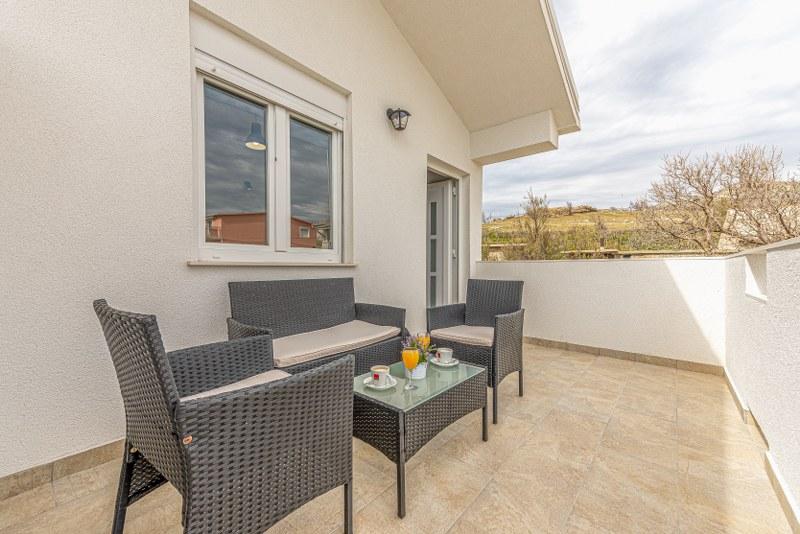 Apartamente moderne nou mobilate (2) într-un loc liniștit Stara Vas de pe insula Pag. Locul este la 3 km distanță de plajă și magazine (Dinjiška). Este ideal pentru relaxare pe terasă, în liniște, cu vedere la mare. Dacă sunteți în căutarea unei pauze de mulțime și zgomot, sunteți în locul potrivit. Dacă sunteți în căutarea distracției sau vă interesează atracțiile și istoria, orașul Pag este la 11 kilometri distanță. Facilitățile sunt complet decorate; constau dintr-un living, bucătărie, dormitor, baie și terasă. Livingul conține o canapea cu posibilitate de stretching, smart TV, seif, aer condiționat. Bucătărie cu mașină de spălat vase, plită ceramică, cuptor, frigider mare, aparat de cafea cu filtru, ceainic. Dormitor cu pat dublu, două noptiere și două lămpi de noptieră, dulap și comodă suplimentară. Baie dotată cu mașină de spălat (fier de călcat și uscător de păr sunt disponibile). Tetrace cu mobilier de exterior. - Wi-fi disponibil - Parcare gratuită - Posibil de utilizat șemineu în aer liber (grătar)